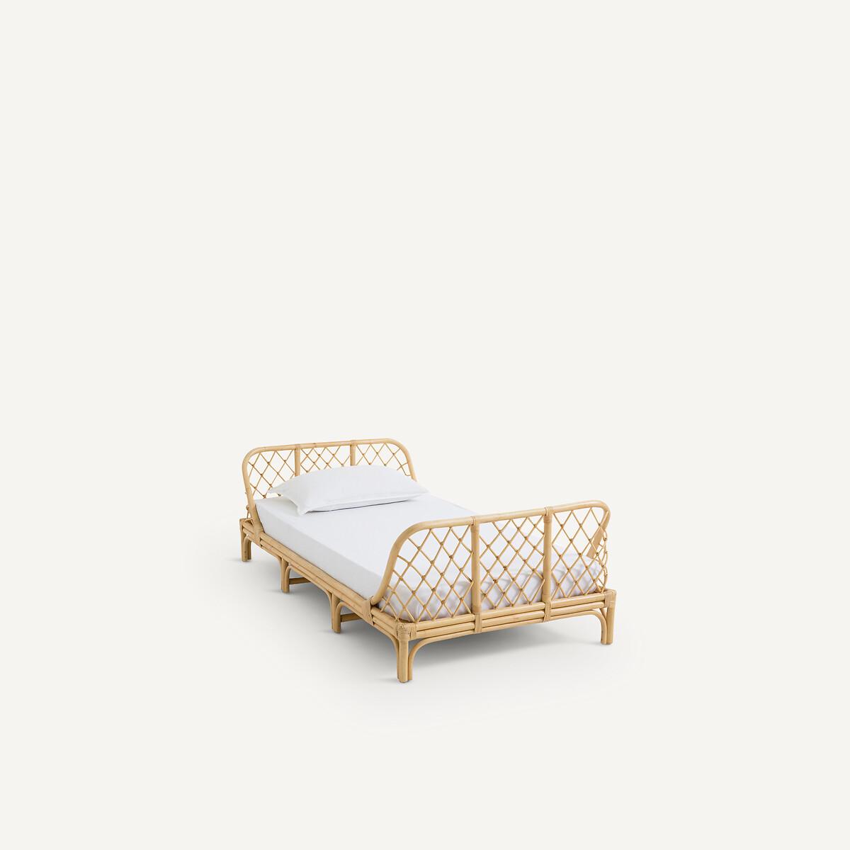 I love this little bed for its natural, relaxed look and the rattan finish that adds warmth and texture to any child's bedroom. It works particularly well in boho, coastal, or Scandi-inspired interiors, where light, natural materials are key. To style it effectively, consider keeping the bedding simple-neutral tones or soft pastels work well-while adding playful or personalised touches with colourful cushions, throws, or wall art. Practical tips include using under-bed storage to maximise space and choosing a mattress that complements the frame’s low profile for a streamlined look. This bed blends function and style seamlessly, making it both a charming focal point and a practical choice for a child’s space.