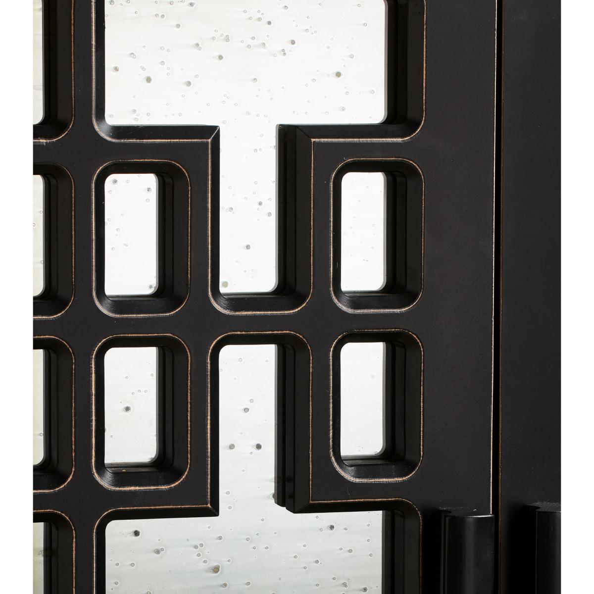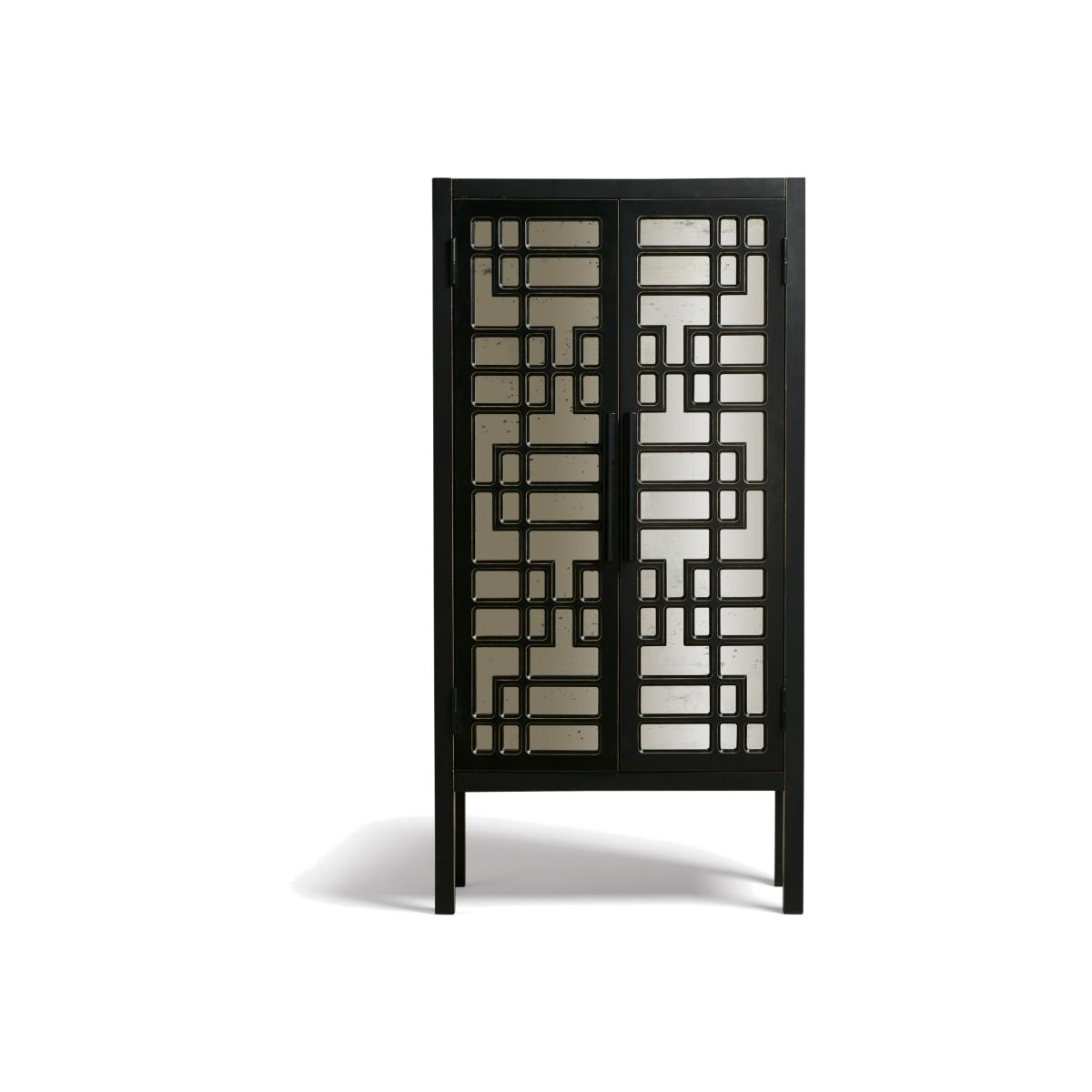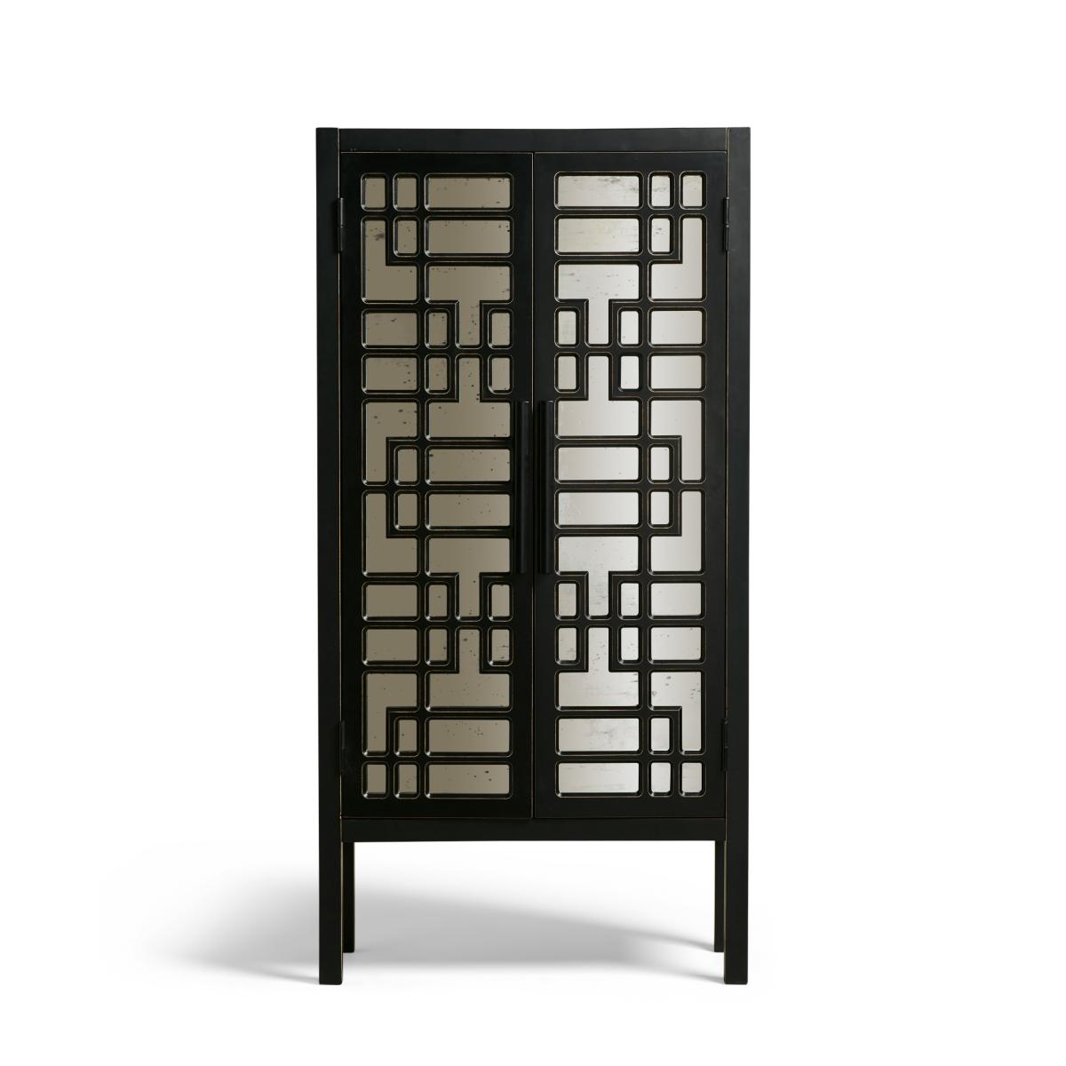 Drawing on the elaborate woodwork found in traditional Japanese architecture, the Katsura Cabinet is defined by bold lines and a dark, painted finish, which has a rubbed effect on the edges and corners. Behind its wooden façade sit mirrored panels that will reflect light while, inside, you'll find striking red-painted wooden shelves. There are three shelves, the middle of which is fixed and the other two are adjustable and removeable so that you can arrange the inside how you wish.