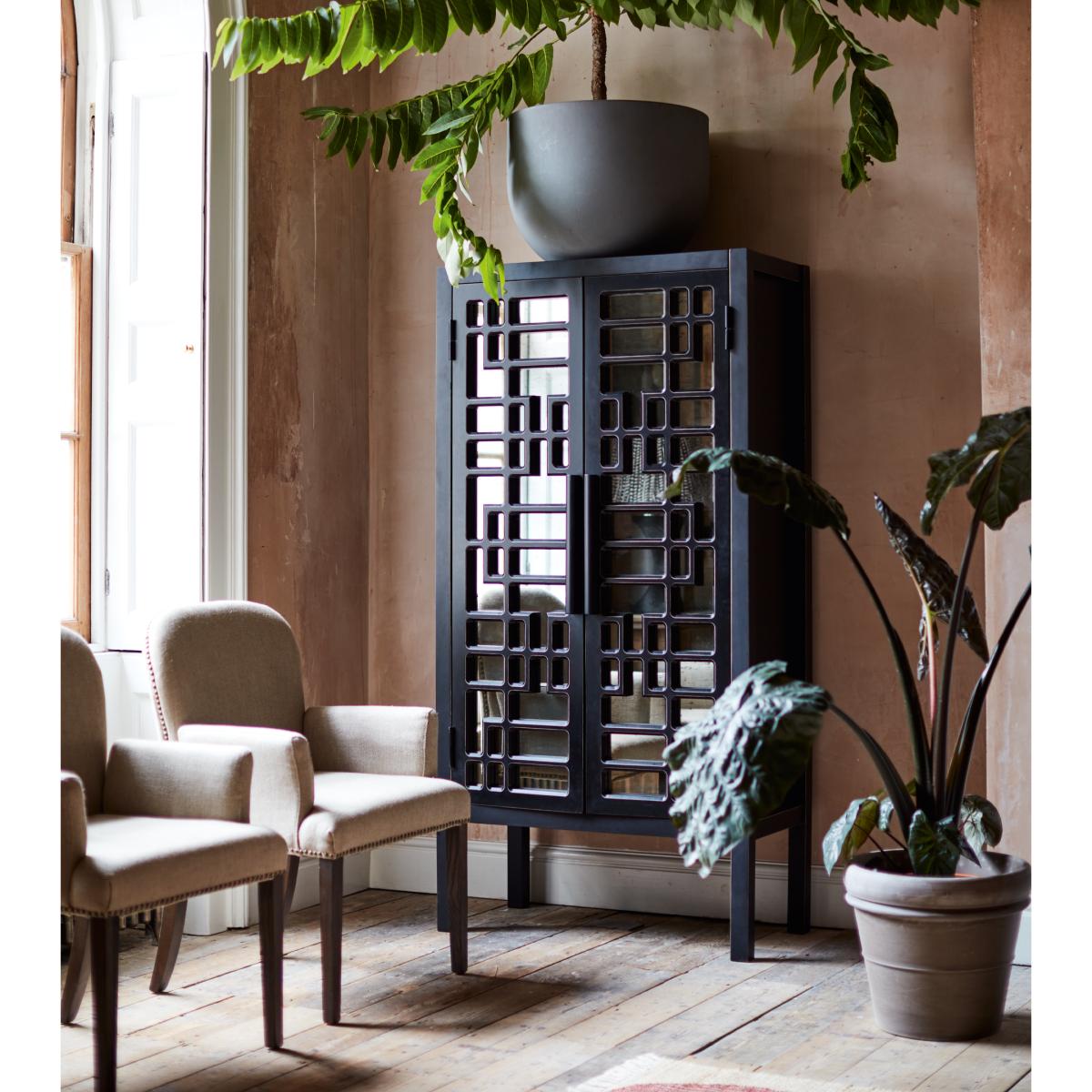 I love this piece because of its striking contrast and subtle nod to traditional Asian design with a modern twist. The Katsura cabinet’s rubbed black finish combined with the red interior offers a versatile look that can work beautifully in both contemporary and eclectic interiors. It’s ideal for use as a statement storage piece in a living room or hallway, especially when paired with minimalistic decor to let the cabinet stand out. Practical styling tips include using it to showcase decorative objects or books behind the grille for added visual interest, while keeping the surrounding colour palette neutral to emphasise its architectural detail. It’s a show-stopping yet functional addition that introduces both colour and texture into any space.