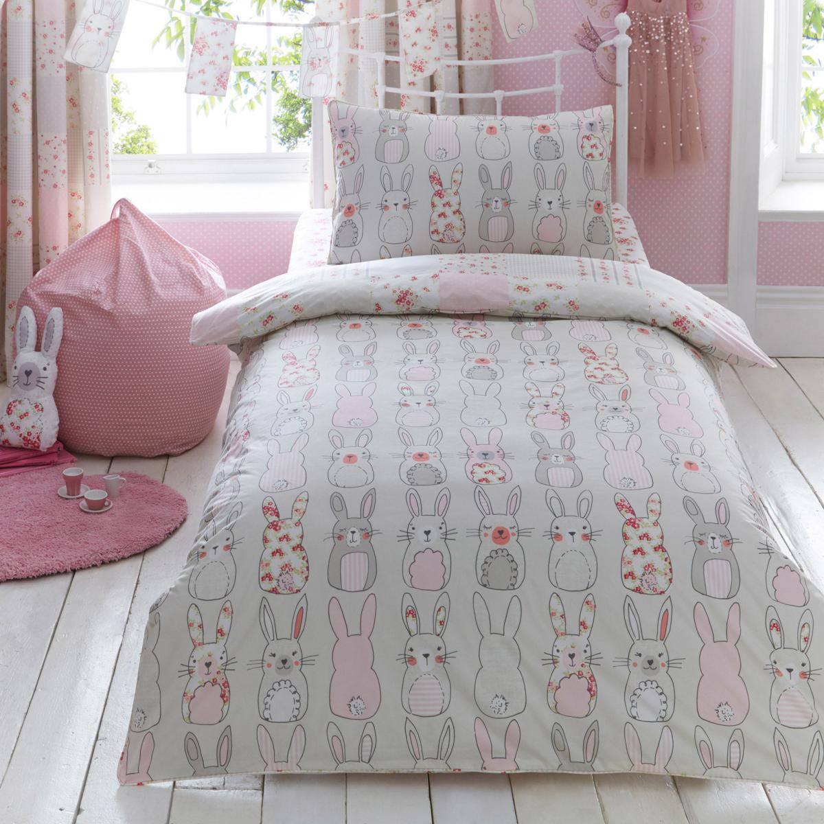 Katy Rabbit Reversible Duvet Cover and Pillowcase Set Pink