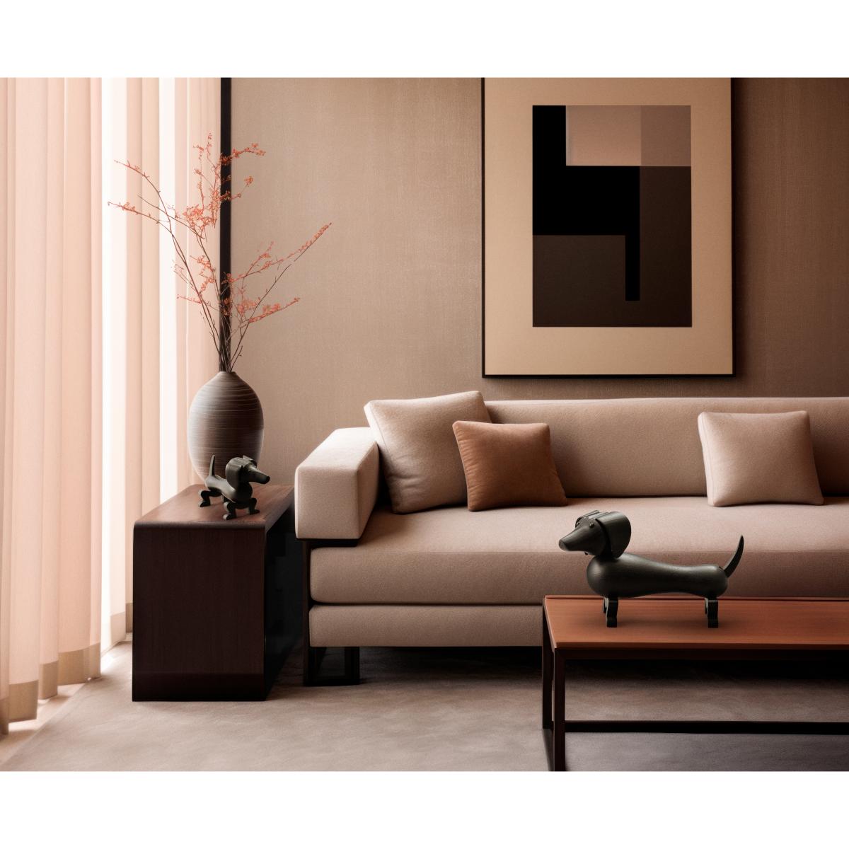 I adore the dog sculpture for its playful yet contemporary appeal. Its dark stained oak brings a warm, natural element that works well in both modern and traditional interiors. It's an ideal piece to add character to a sideboard, bookshelf, or entryway table, particularly in spaces that favour minimalism or Scandinavian-inspired settings. For styling tips, consider pairing it with neutral or textured textiles to let the sculpture stand out, or place it among a selection of other natural materials like ceramics or greenery for a thoughtfully curated vignette. Its size makes it versatile-big enough to make a statement but still subtle enough to complement a range of furnishings.