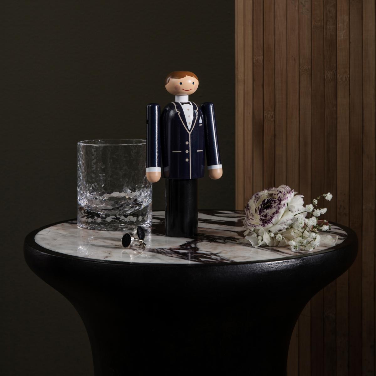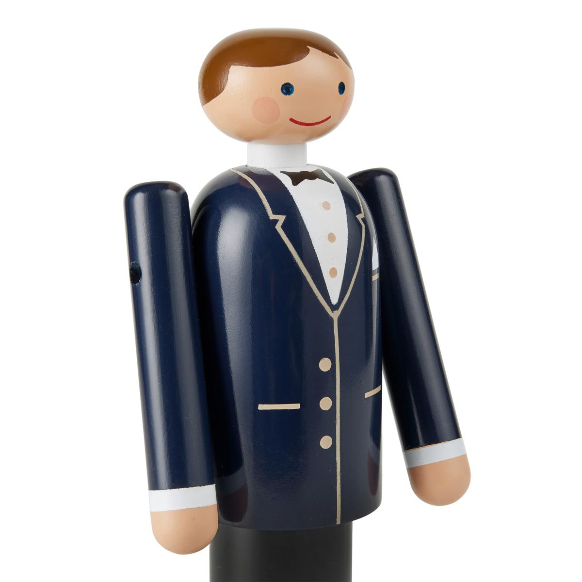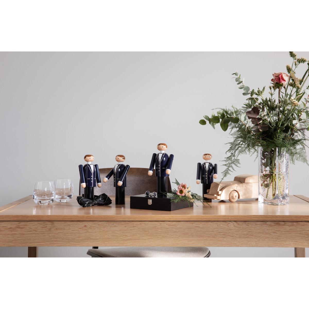 This little grooms sculpture is a charming addition to modern and classic interiors alike. I love its minimalist design and playful use of colour, which makes it versatile enough to sit on a bookshelf, side table, or console. It works particularly well in schemes that incorporate Scandinavian or contemporary elements, bringing a touch of whimsy without overpowering the space. For styling tips, consider placing it alongside natural materials like wood or ceramic accessories to highlight its sculptural quality. It’s also great for adding visual interest in a child’s room or a playful corner, giving a nod to craftsmanship with a stylish twist.
