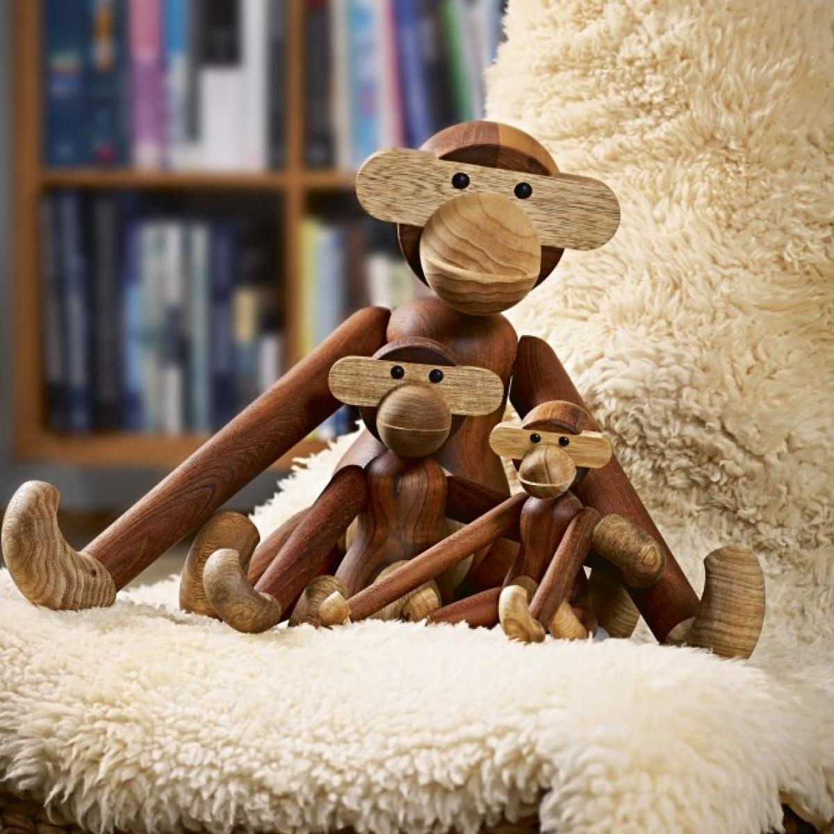 The charming medium wooden monkey is designed by Kay Bojesen and is the third member of the monkey troop so far. The monkey is handmade at a Danish workshop in teak and limba wood that lasts for many generations. The monkey is perfect to give away as a gift and is appreciated by both young and adults. Combine the monkey with other fine wooden figures from Kay Bojesen to create your own personal collection!.