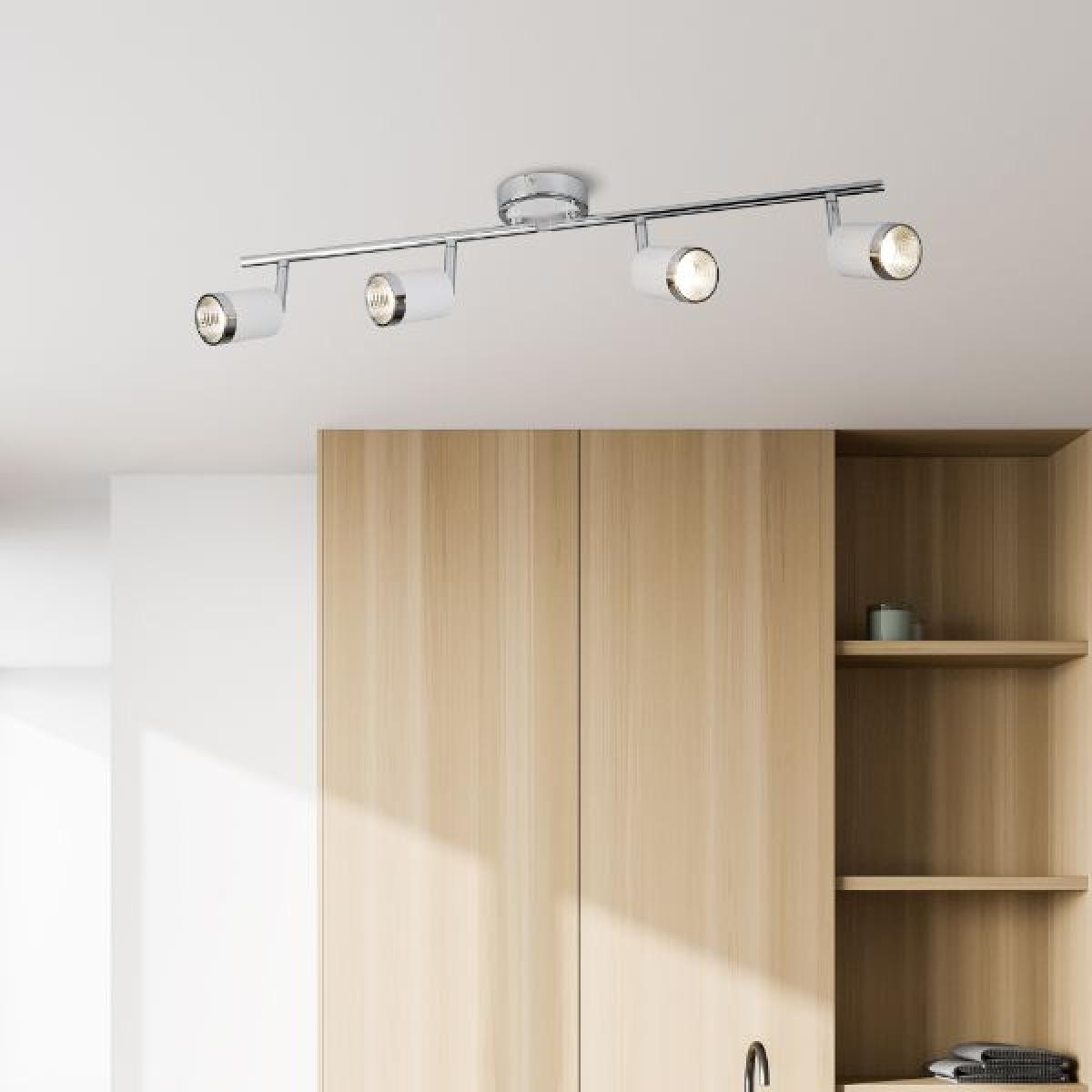 Kaya 4 Light LED Spotlight Bar Polished Chrome Add a contemporary touch to your interiors with this stylish spotlight bar which is exclusive to PAGAZZI Lighting. The Kaya 4 Light LED Spotlight Bar boasts a polished chrome frame with white spotlights. Each spotlight can be adjusted to allow the light to be directed where needed making this ideal for use in the kitchen or dining room. Kaya 4 Light LED Spotlight Bar Polished Chrome Add a contemporary touch to your interiors with this stylish spotlight bar which is exclusive to PAGAZZI Lighting. The Kaya 4 Light LED Spotlight Bar boasts a polished chrome frame with white spotlights. Each spotlight can be adjusted to allow the light to be directed where needed making this ideal for use in the kitchen or dining room.