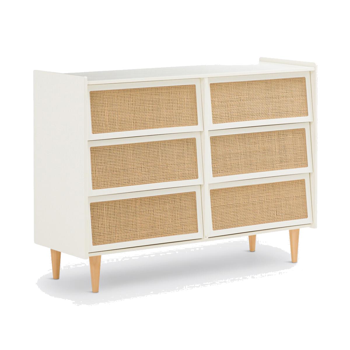 I love the Kaya six-drawer chest for its blend of practicality and texture-its wickerwork fronts bring a lovely natural element that softens modern or minimalist spaces. It works particularly well in coastal, boho, or Scandinavian interiors, adding warmth and visual interest without overwhelming the room. For styling tips, consider pairing it with light-toned or neutral bedding, rugs, and accessories to maintain a fresh, airy vibe. It’s also a versatile piece that can function well in both bedrooms and living areas, offering ample storage while serving as a statement piece. Elevate the look with a few curated decorative objects on top, like a small plant or vintage tray, to complete the laid-back, stylish aesthetic.