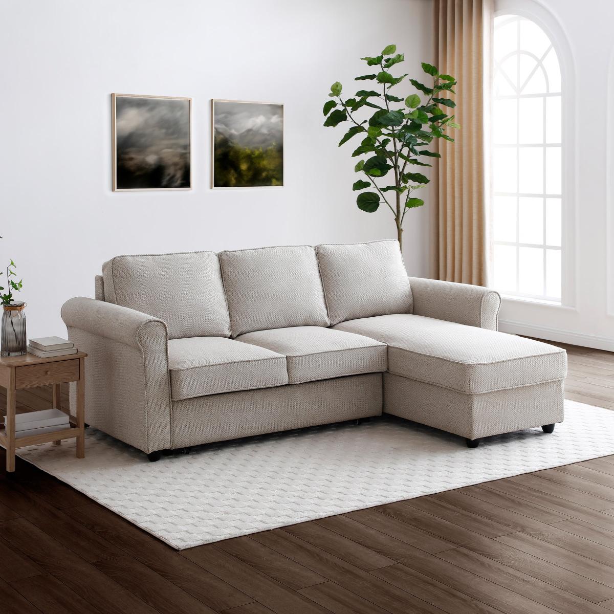 Kayden Fabric Traditional Scroll Arm Corner Sofa Bed Natural