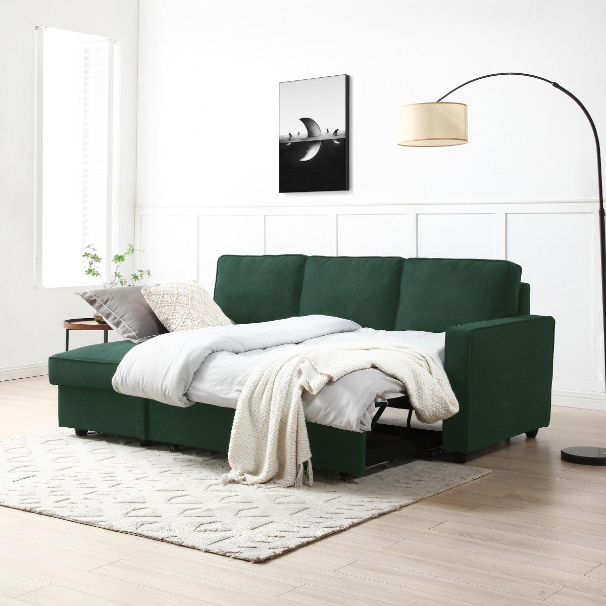 * 3-Seater sofa* Choice of left and right hand facing* Transform in to a reclined/sleeping space* Storage underneath the chaise* Soft touch upholstery Crafted to elevate the aesthetics of your living space, this Sofa Bed provides unmatched comfort and ingenious storage solutions. Designed with practicality in mind, this sofa bed seamlessly combines comfort and convenience. The plush cushions, generously padded armrests, and spacious seating area ensure a luxurious lounging experience for you and your loved ones. What sets this sofa bed apart is its remarkable storage capabilities. Lift the chaise to reveal a hidden compartment that offers ample space for storing extra pillows, blankets, or any essentials you want to keep within reach but out of sight. This innovative feature allows you to maximize your living space without compromising on style.