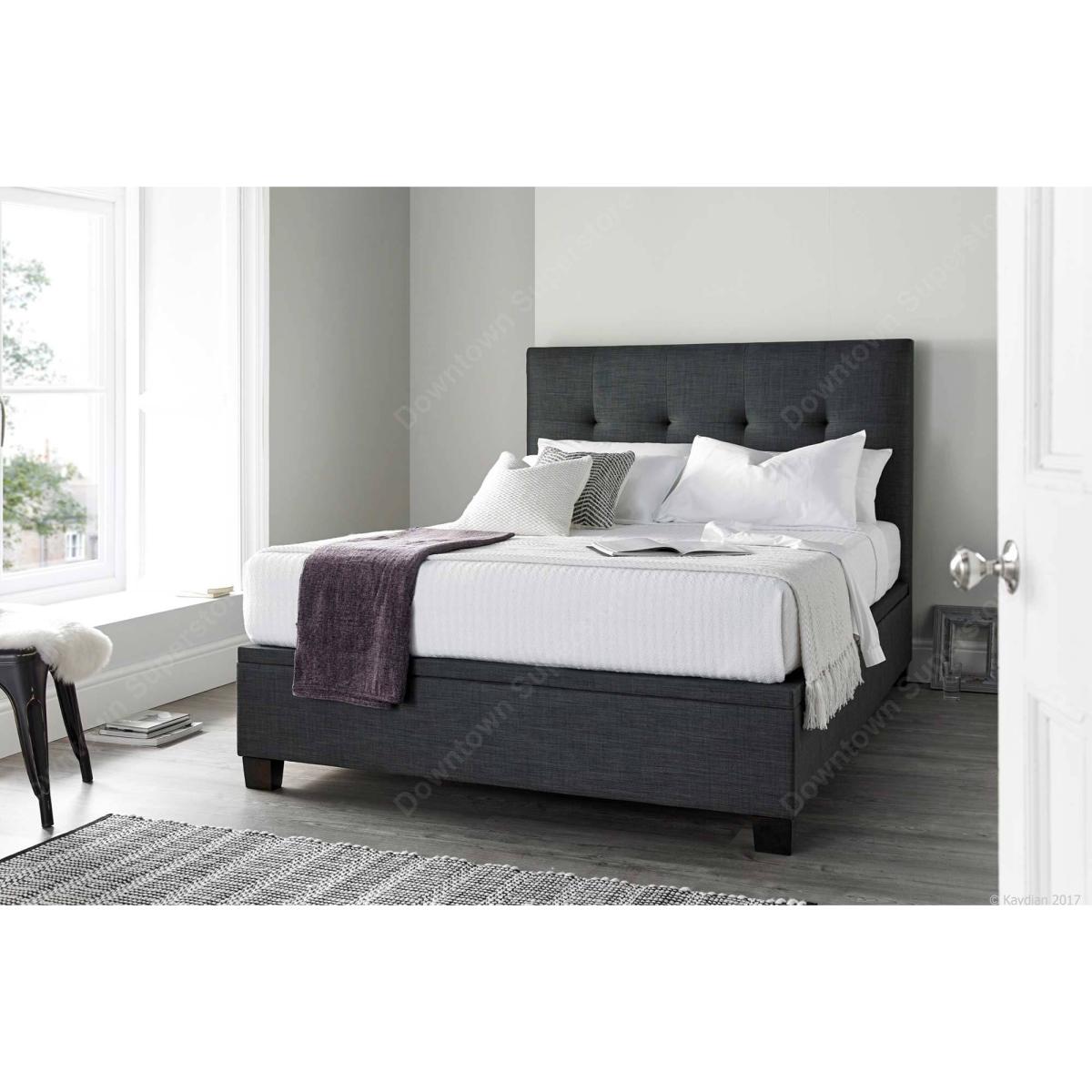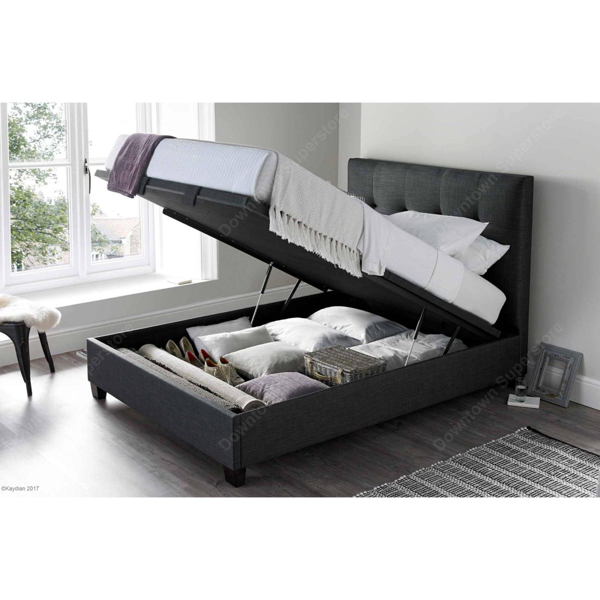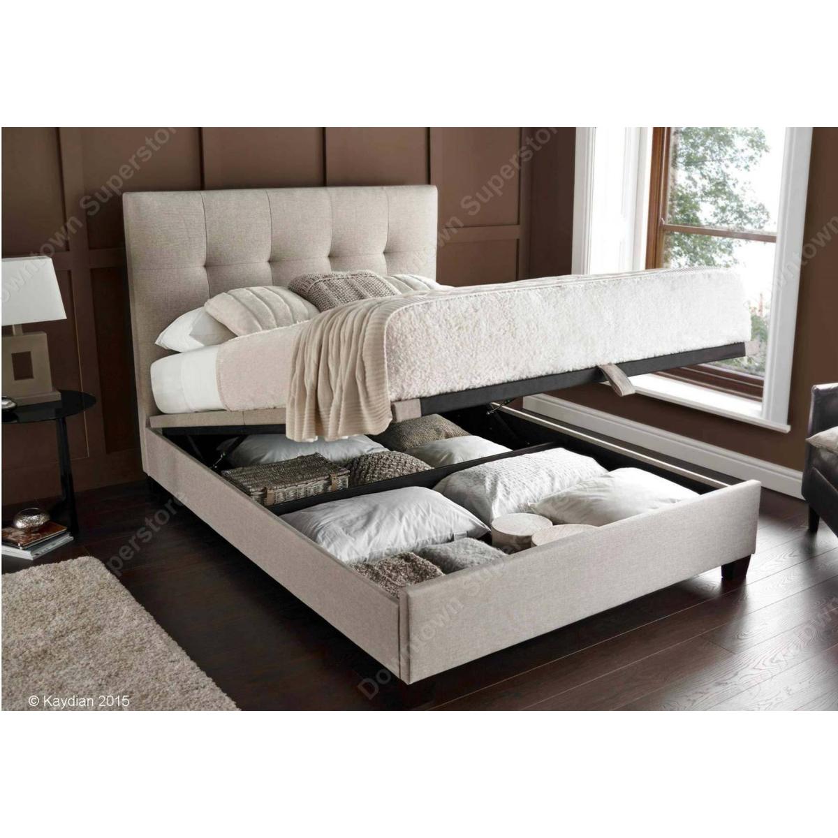 Featuring the revolutionary lift up system, this storage bed has a cavenous interior that will hold clothing, shoes and other lightweight items. This bedframe is ideal for bedrooms where space for furniture is in short supply. Every square inch can be used below the mattress as storage making this storage bed ideal for those with a huge clothing collection!All you need to do is add your chosen mattress (not included) and dress it with your chosen bedding and bedlinen and you can inject a sense of hotel chic into your bedroom. And to complete the look, why not treat yourself to two matching Andorra Bedside Cabinets (available separately) upholstered in the same fabric and with 2 handy drawers for your bits and pieces. Maximum mattress weight is 55kg. Mattress not included Piston assisted lift-up system for effortless opening to reveal a handy storage space beneath the mattress Platform style ventilated base Hardwood feet Dimensions:External DimensionsDouble - 139cm W x 210cm DKing - 155cm W x 212cm DSuper King - 185cm W x 220cm DInternal DimensionsDouble - 133cm W x 20cm DKing - 149cm W x 20cm DSuper King - 179cm W x 20cm D All screens vary in colour reproduction and whilst every effort has been made to display the colour as accurately as possible it is for guidance only.