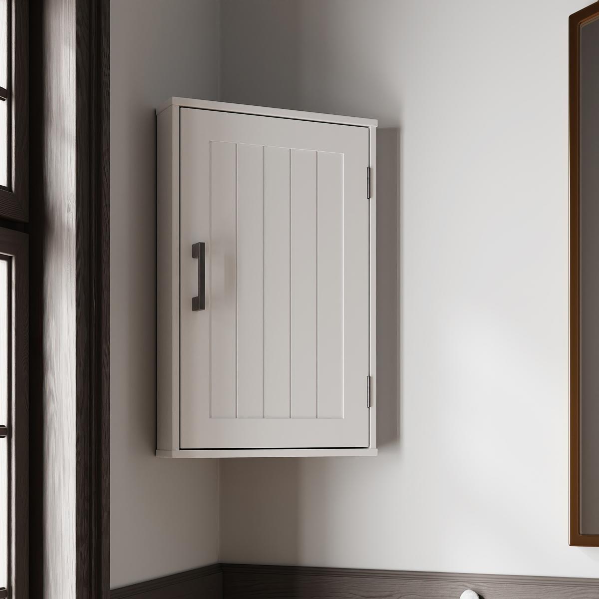 I love this little corner wall cabinet for its crisp, clean look and practical design. Its white finish makes it versatile enough to work in a range of interiors, from cosy country kitchens to sleek, modern bathrooms. It’s a great space-saver and works well in tighter areas where concealed storage is essential. For styling, consider pairing it with open shelves or decorative jars beneath for visual interest, or add small indoor plants or vintage accessories to soften its utilitarian feel. Its neutral hue also means it can be easily integrated with colourful or patterned surroundings without clashing. Overall, it’s a smart, functional choice for adding discreet storage without compromising on style.