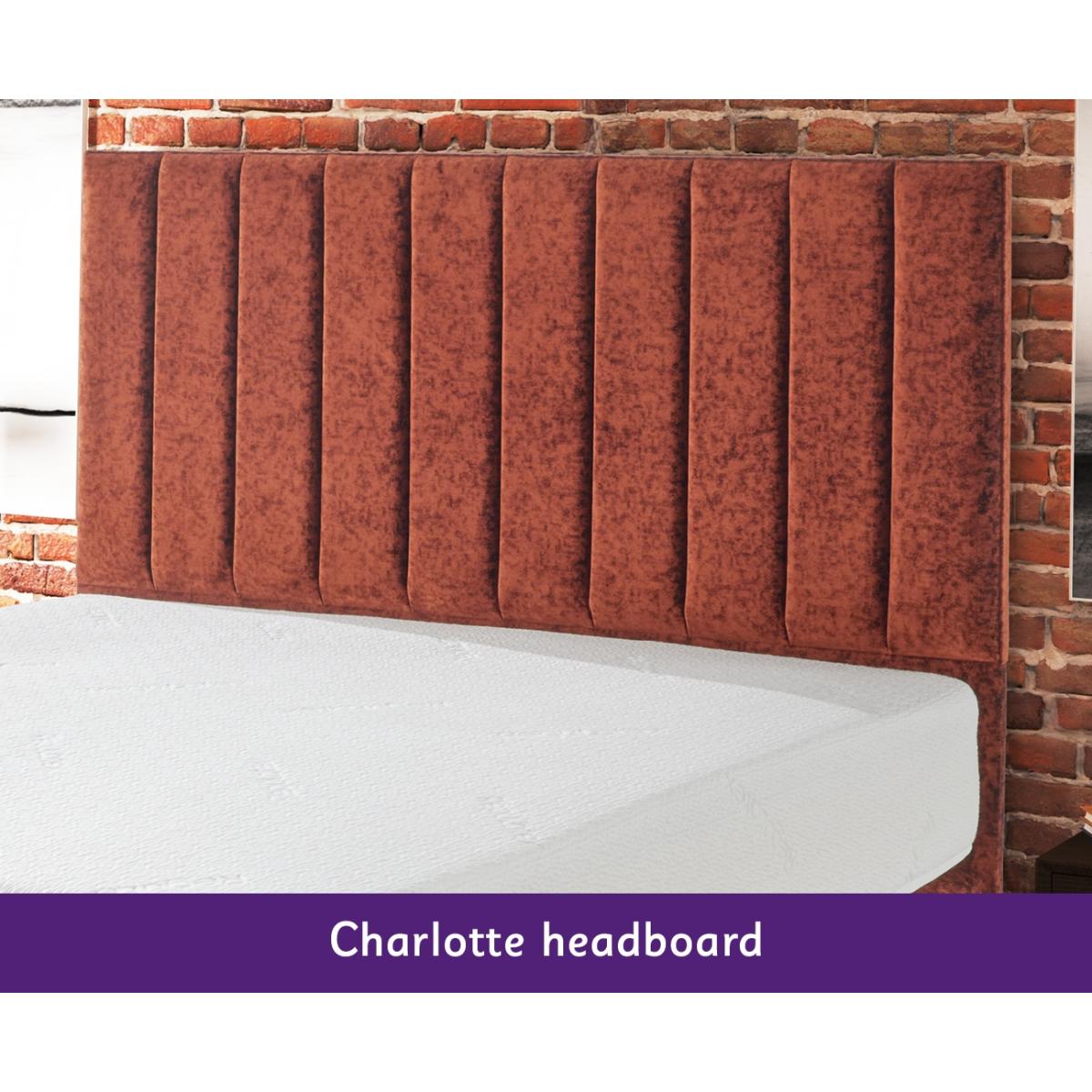 Enhance your bedroom with our exquisite Kaymed Charlotte Floor Standing Headboard! Crafted with premium materials and attention to detail, this headboard not only adds a touch of elegance to your space but also offers unparalleled comfort and support. Its tall, commanding presence creates a focal point in any room, while its sturdy construction ensures durability for years to come. European style full height headboard Supplied with fixings for attaching to standard size divans and bed frames Headboard height 137cm Dimensions: (W) 120cm x (D) 8cm x (H) 137cm - Small Double (120cm) (W) 135cm x (D) 8cm x (H) 137cm - Double (135cm) (W) 150cm x (D) 8cm x (H) 137cm - Kingsize (150cm) (W) 180cm x (D) 8cm x (H) 137cm - Super King (180cm) (W) 90cm x (D) 8cm x (H) 137cm - Single (90cm) All screens vary in colour reproduction and whilst every effort has been made to display the colour as accurately as possible it is for guidance only