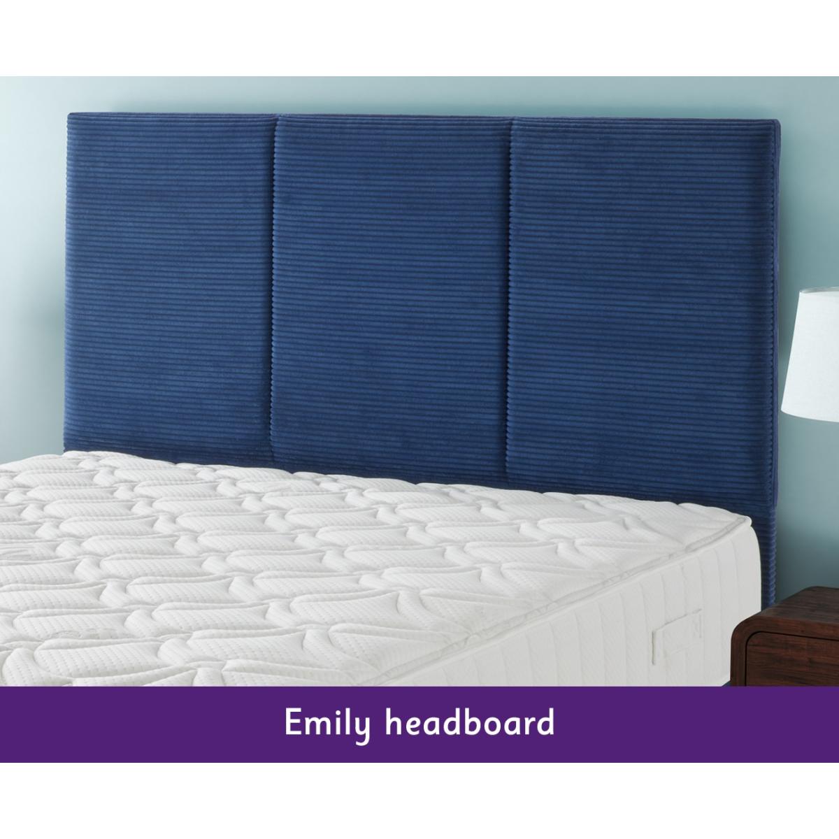 Enhance your bedroom with our exquisite Kaymed Emily Floor Standing Headboard! Crafted with premium materials and attention to detail, this headboard not only adds a touch of elegance to your space but also offers unparalleled comfort and support. Its tall, commanding presence creates a focal point in any room, while its sturdy construction ensures durability for years to come. European style full height headboard Supplied with fixings for attaching to standard size divans and bed frames Headboard height 137cm Dimensions: (W) 120cm x (D) 8cm x (H) 137cm - Small Double (120cm) (W) 135cm x (D) 8cm x (H) 137cm - Double (135cm) (W) 150cm x (D) 8cm x (H) 137cm - Kingsize (150cm) (W) 180cm x (D) 8cm x (H) 137cm - Super King (180cm) (W) 90cm x (D) 8cm x (H) 137cm - Single (90cm) All screens vary in colour reproduction and whilst every effort has been made to display the colour as accurately as possible it is for guidance only