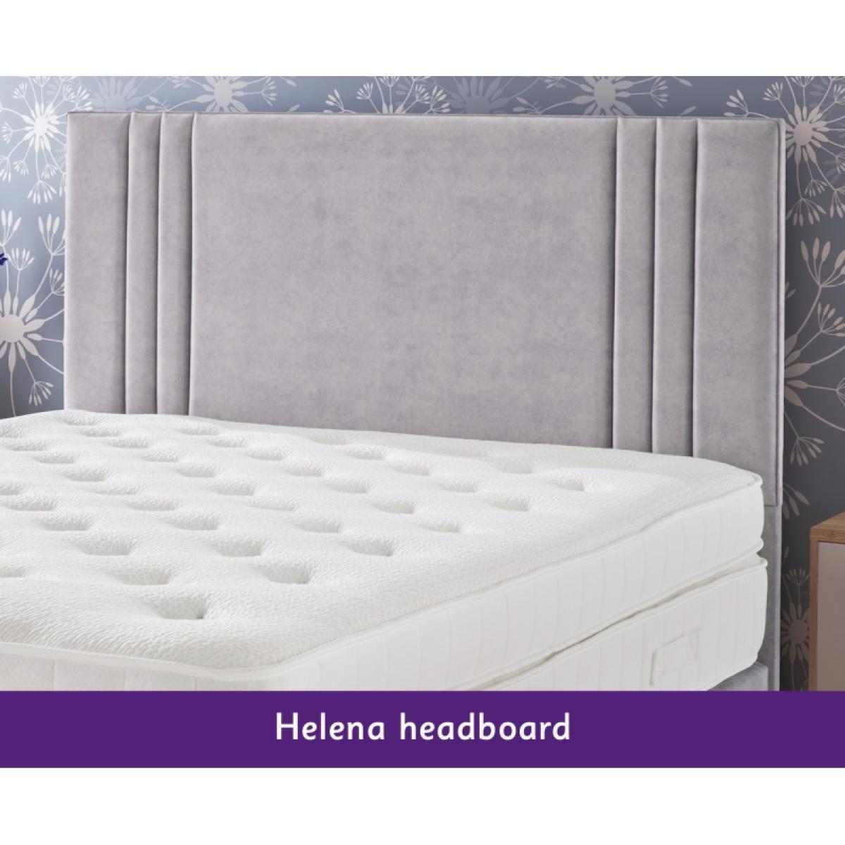 Enhance your bedroom with our exquisite Kaymed Helena Floor Standing Headboard! Crafted with premium materials and attention to detail, this headboard not only adds a touch of elegance to your space but also offers unparalleled comfort and support. Its tall, commanding presence creates a focal point in any room, while its sturdy construction ensures durability for years to come. European style full height headboard Supplied with fixings for attaching to standard size divans and bed frames Headboard height 137cm Dimensions: (W) 120cm x (D) 8cm x (H) 137cm - Small Double (120cm) (W) 135cm x (D) 8cm x (H) 137cm - Double (135cm) (W) 150cm x (D) 8cm x (H) 137cm - Kingsize (150cm) (W) 180cm x (D) 8cm x (H) 137cm - Super King (180cm) (W) 90cm x (D) 8cm x (H) 137cm - Single (90cm) All screens vary in colour reproduction and whilst every effort has been made to display the colour as accurately as possible it is for guidance only