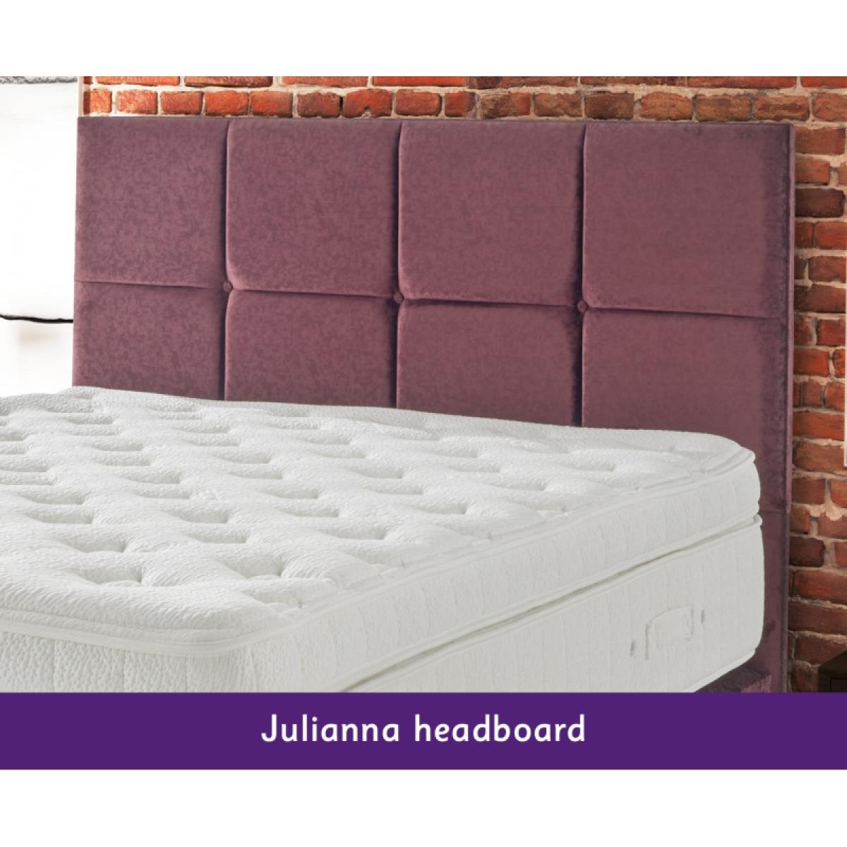 Enhance your bedroom with our exquisite Kaymed Julianna Floor Standing Headboard! Crafted with premium materials and attention to detail, this headboard not only adds a touch of elegance to your space but also offers unparalleled comfort and support. Its tall, commanding presence creates a focal point in any room, while its sturdy construction ensures durability for years to come. European style full height headboard Supplied with fixings for attaching to standard size divans and bed frames Headboard height 137cm Dimensions: (W) 120cm x (D) 8cm x (H) 137cm - Small Double (120cm) (W) 135cm x (D) 8cm x (H) 137cm - Double (135cm) (W) 150cm x (D) 8cm x (H) 137cm - Kingsize (150cm) (W) 180cm x (D) 8cm x (H) 137cm - Super King (180cm) (W) 90cm x (D) 8cm x (H) 137cm - Single (90cm) All screens vary in colour reproduction and whilst every effort has been made to display the colour as accurately as possible it is for guidance only