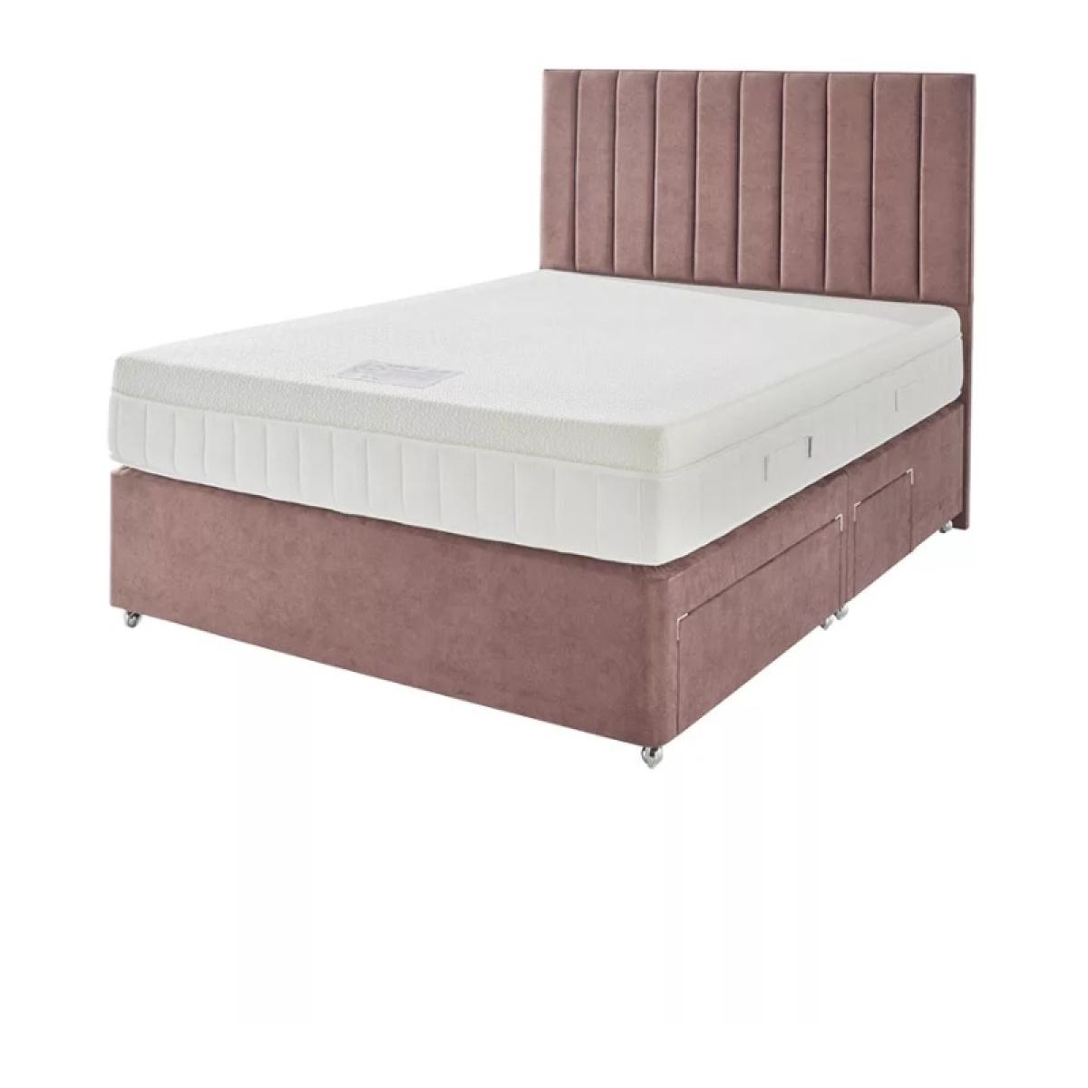 Note - The headboard pictured is not included but is available to purchase separately. The base or frame pictured in the image may not be representative of the specific base you require. Please contact us for more information, if needed. The Kaymed Nirvana 1200 Mattress & Divan Set is a comfortable choice for support for a restful night’s sleep. Combining comfort, Therma~Phase TM Ultra pressure relief and sleep surface temperature regulation, this bed is created with over a century of expertise in sleep technology. Available in a variety of beautiful fabrics, with many storage options and chrome plated metal castors adding both style and functionality to your bedroom. The infusion of copper and precious metal microbeads work as a super~fast heat conductor,quickly moving heat to and from the mattress surface as required. Sleep both sides to extend mattress life and performance - please turn and rotate regularly Choice of storage options Choice of base fabrics Mattress Depth - 24cm Divan Dimensions Single - 90cm (w) x 190cm (l)x 38cm (d) Small Double - 120 (w) x 190 (l) x 38cm (d) Double - 135cm (w) x 190cm (l) x 38cm (d) King - 150cm (w) x 200cm (l) x 38cm (d) Superking - 180cm (w) x 200cm (l) x 38cm (d) All screens vary in colour reproduction and whilst every effort has been made to display the colour as accurately as possible it is for guidance only.