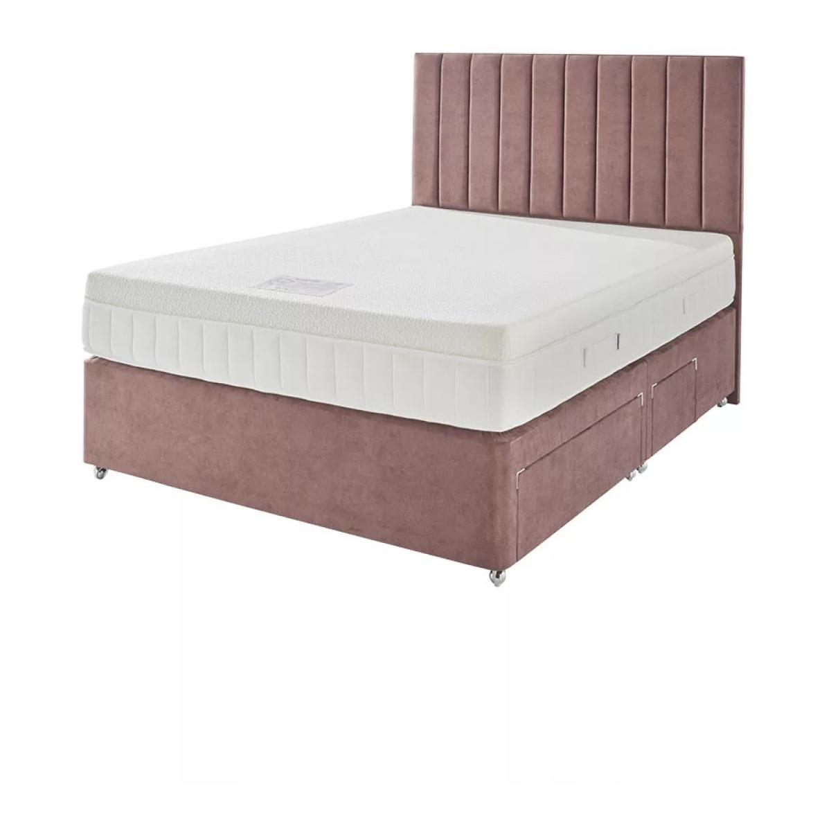 Note - The headboard pictured is not included but is available to purchase separately. The base or frame pictured in the image may not be representative of the specific base you require. Please contact us for more information, if needed. The Kaymed Nirvana 1200 Mattress & Divan Set With Tapered Legs is a comfortable choice for support for a restful night’s sleep. Combining comfort, Therma~Phase TM Ultra pressure relief and sleep surface temperature regulation, this bed is created with over a century of expertise in sleep technology. Available in a variety of beautiful fabrics, and Tapered Legs adding both style and functionality to your bedroom. The infusion of copper and precious metal microbeads work as a super~fast heat conductor,quickly moving heat to and from the mattress surface as required. Sleep both sides to extend mattress life and performance - please turn and rotate regularly Choice of base fabrics Mattress Depth - 24cm Divan Dimensions Single - 90cm (w) x 190cm (l) x 40cm (d) Small Double - 120 (w) x 190 (l) x 40cm (d) Double - 135cm (w) x 190cm (l) x 40cm (d) King - 150cm (w) x 200cm (l) x 40cm (d) Superking - 180cm (w) x 200cm (l) x 40cm (d) All screens vary in colour reproduction and whilst every effort has been made to display the colour as accurately as possible it is for guidance only.