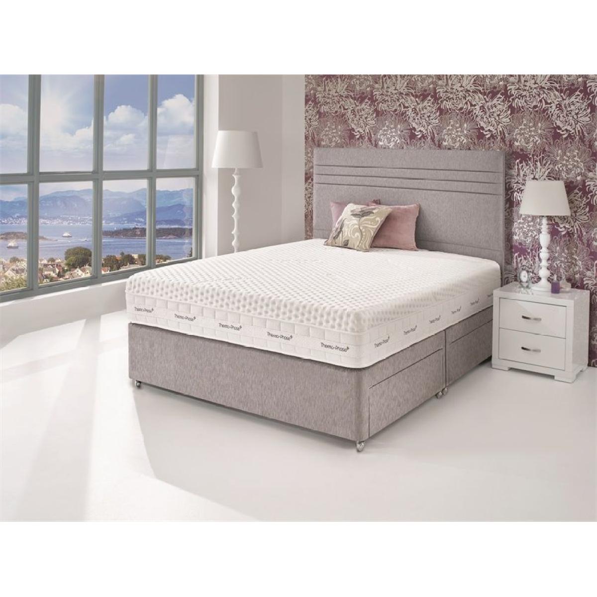 Kaymedhave over a century’s expertise at the forefront of sleep technology and are the leading innovator in the gel and visco-elastic technologies. The Thermaphase Harmonise 1200 is a high density pressure relieving mattress, containing unique phase change crystals and copper particles. The phase change crystals work by continuously absorbing and releasing body heat to maintain the perfect sleep surface temperature. The copper infusion works as a super-fast conductor, quickly moving heat to and from the mattress surface as required. Copper is also naturally anti-bacterial and anti-viral. Working with the 1200 pocket springs (based on a King Size), Thermaphase+ Harmonise 1200 is designed to respond immediately to any body movements, giving optimum support and comfort which is essential for a restful night’s sleep. Available in a range of divan colours with a chrome legged base. Comes in Single, Double, King or Super King sizes. With multiple drawer options including no storage, 2 drawer, 2+2 drawer and 4 drawers.