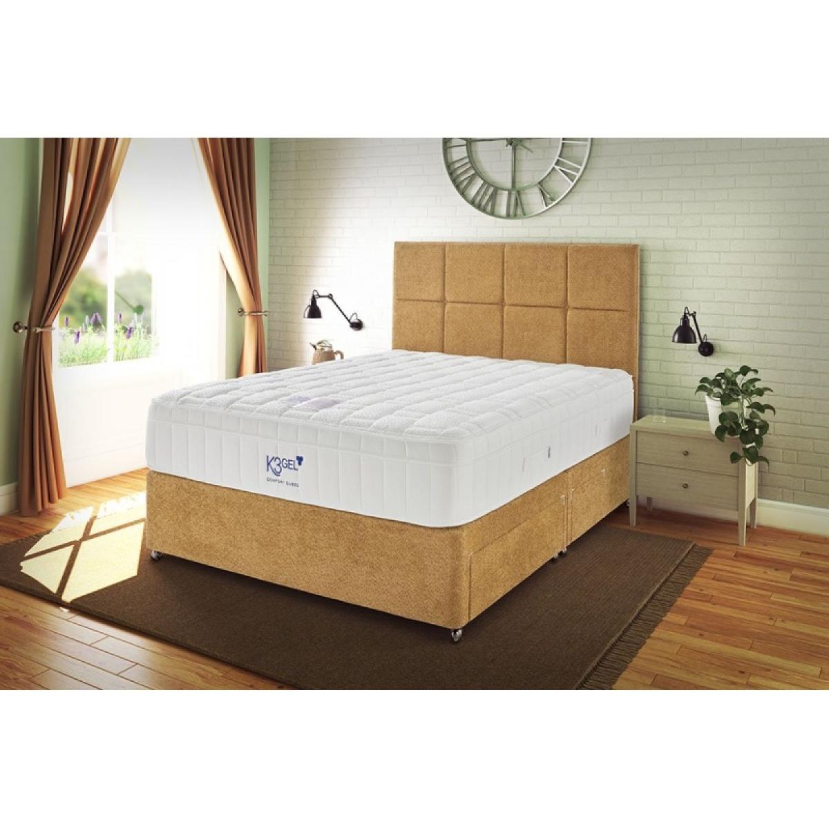 Introducing the Kaymed Ultimate 1800 Mattress, where advanced technology meets superior comfort for an unparalleled sleep experience. Boasting 1800 individually nested pocket springs, this mattress ensures personalized support and optimal alignment throughout the night. With innovative K3 Gel technology, air circulation is enhanced, and body temperature is regulated, providing a consistently cool and comfortable sleep environment. Crafted with medium tension, it strikes the perfect balance between support and softness, delivering rejuvenating sleep every night. Backed by a 5-year guarantee, the Kaymed Ultimate 1800 Pocket Mattress is a long-term investment in your sleep quality. Available in various sizes, from single to super king, upgrade your sleep sanctuary and wake up refreshed with this exceptional mattress. Tension: Medium Features: Pocket springs: 1800 pocket springs in a king size mattress. Number of pocket springs varies on size. No turn mattress Mattress depth 32cm Available in Single, Small Double, Double, King and Super King sizes. 5 year guarantee and 5 year warranty with mattress-only orders. Supplied by Kaymed. Mattress Dimensions: Single - W 90cm (3ft) x L 190cm (6ft3) x D 32cm (12.5”) Small Double - W 120cm (4ft) x L 190cm (6ft3) x D 32cm (12.5") Double - W 135cm (4ft6) x L 190cm (6ft3) x D 32cm (12.5”) King Size - W 150cm (5ft) x L 200cm (6ft6) x D 32cm (12.5") Super King Size - W 180cm (6ft) x L 200cm (6ft6) x D 32cm (12.5”)