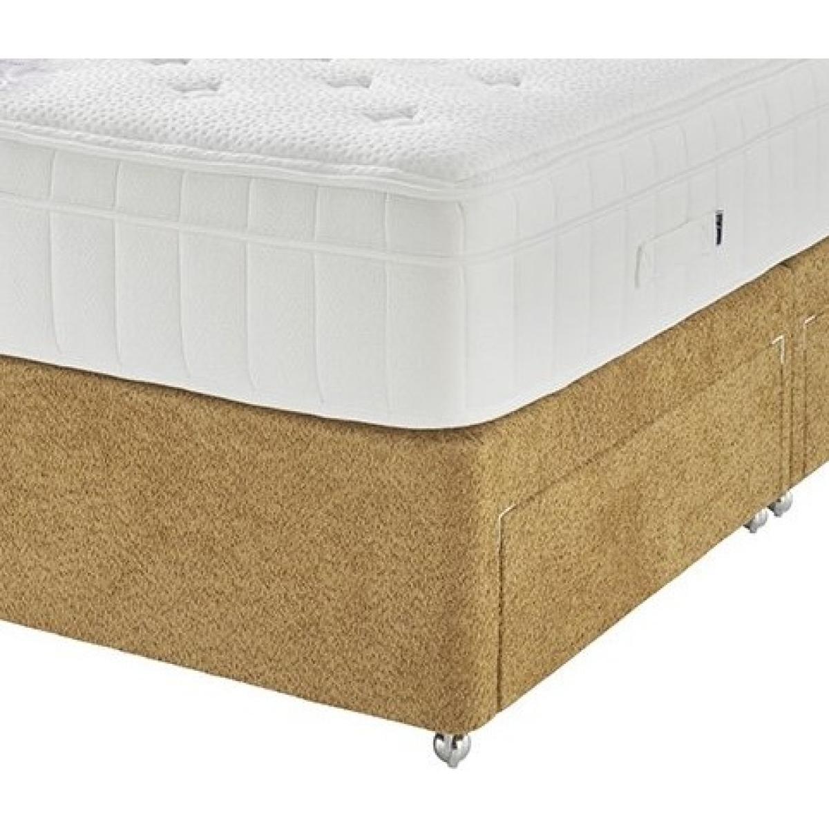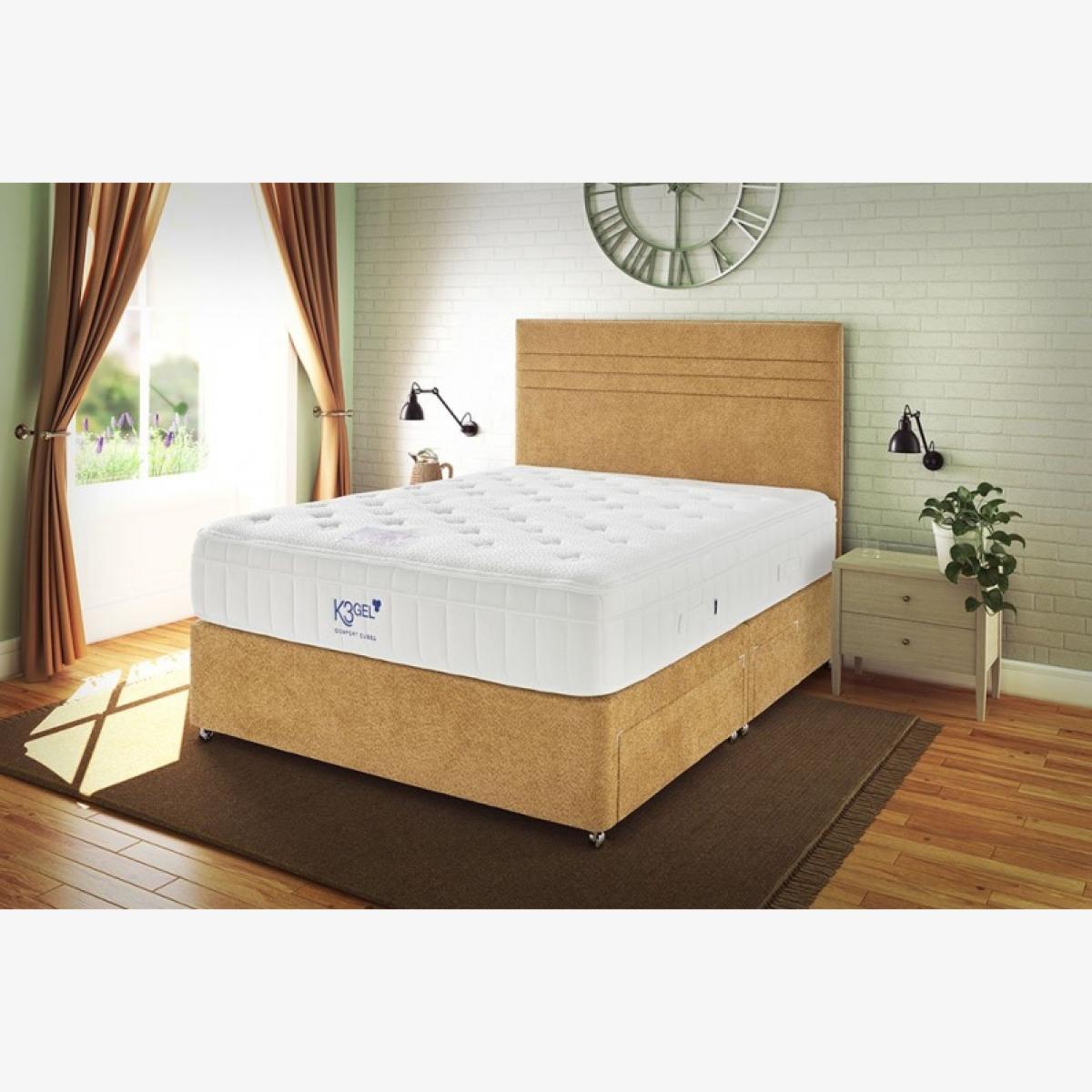 Note - The headboard pictured is not included but is available to purchase separately. The base or frame pictured in the image may not be representative of the specific base you require. Please contact us for more information, if needed. Indulge in the ultimate sleep experience with the Kaymed Ultimate 2200 Mattress & Divan Set, a luxurious combination of advanced sleep technology and premium materials designed to deliver superior comfort and support. With cutting-edge features and a refined design, this set will transform your bedroom into a haven of relaxation. The Kaymed Ultimate 2200 Divan Set features a sturdy, supportive base that enhances the performance of the mattress. Its modern, sleek design offers an elegant aesthetic to complement any bedroom, while the solid divan base ensures that you enjoy the full benefits of the mattress’s spring system. The divan is available in various fabric options, allowing you to customize the set to suit your unique taste and bedroom décor. The set also features motion isolation technology, minimizing disturbances caused by movement, so you and your partner can enjoy an uninterrupted night’s sleep. With edge-to-edge support, you can rest assured that comfort is consistent across the entire mattress surface, from the center to the edges. Medium Tension Mattress Non Turn Mattress Choice of storage options Choice of base fabrics Matress Depth - 32cm 10 year guarantee with purchase of full divan set. 5 year guarantee and 5 year warranty with mattress-only orders. Supplied by Kaymed. Divan Dimensions Single - 90cm (w) x 190cm (l) x 33cm (d) Small Double - 120 (w) x 190 (l) x 33cm (d) Double - 135cm (w) x 190cm (l) x 33cm (d) King - 150cm (w) x 200cm (l) x 33cm (d) Superking - 180cm (w) x 200cm (l) x 33cm (d) All screens vary in colour reproduction and whilst every effort has been made to display the colour as accurately as possible it is for guidance only.