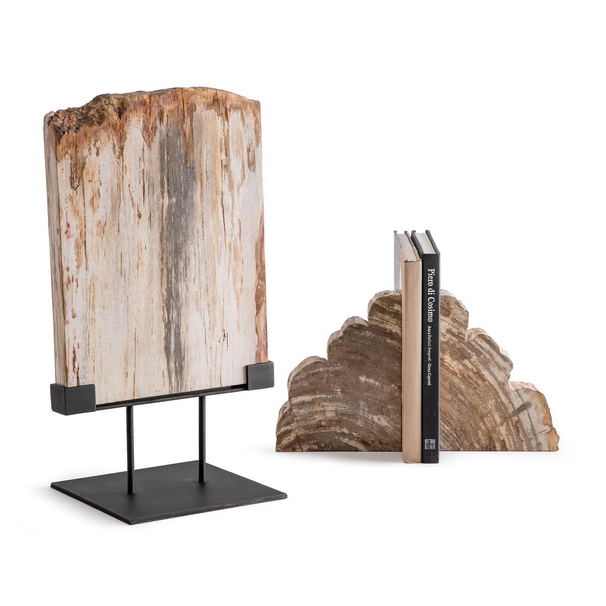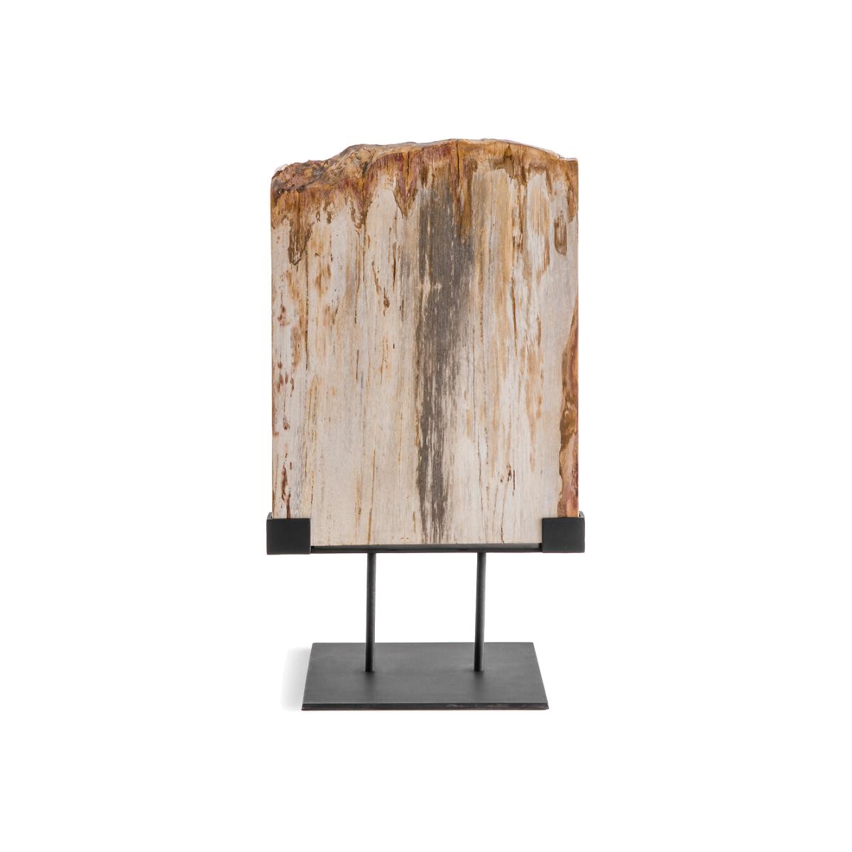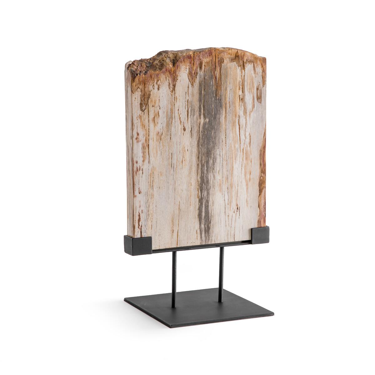 A testament to Earth's long history, this decorative object in petrified wood is a work of art frozen in time. Each piece is a meeting between nature and the hand of man, a harmonious fusion between past and present. Unique and timeless. Product Details • Petrified wood • Aluminium base with black epoxy finish. Quality Info • Petrified wood, also called “fossilised wood”, embodies timeless elegance by revealing the beauty of nature. • Through a long process of fossilisation, organic wood is impregnated with minerals such as quartz, calcite and jasper.. It transforms over millennia into a work of stone, retaining all the details of its original structure.. • Meticulously quarried and polished by hand, each piece of petrified wood is unique. • Its shades can range from grey to red, including beige, brown or even black.. The colour of the product received is therefore random and can vary from the lightest to the darkest tone.. • To preserve its beauty, keep it away from a window exposed to sunlight and rooms subject to extreme fluctuations in temperature or humidity. Care Advice • 1. Clean with a soft, slightly damp cloth. • 2. Ban scrubbing sponges and harsh cleaning products. • 3. Handle it with care: even though it is solid, petrified wood can break or crack if dropped or violently impacted. Dimensions • Width: 25cm • Height: 43cm • Depth: 19cm Parcel dimensions and weight • 1 parcel • L26 x H44 x D37cm. 5kg