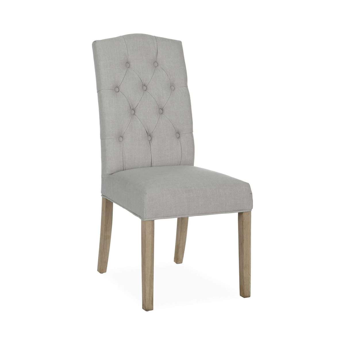 High-backed, gently curved and lavishly upholstered, the Keating button back chair is a stylish partner for any dining table.;Crafted with a solid oak frame and a comfortably-cushioned seat and back, this is an extremely well made chair designed to encourage family and friends to linger around your dining table. It’s upholstered in a soft yet hardwearing fabric in a fashionable oatmeal beige colour and features traditional deep buttoning.;The Keating button back chair is one of several styles of dining room seating in the Keating range and pairs perfectly with the Keating fixed and extending dining tables, both available with either a crossed-leg base or more traditional square legs. The Keating range also includes a wide selection of storage and occasional furniture, all crafted in beautiful pale solid oak and oak veneer.