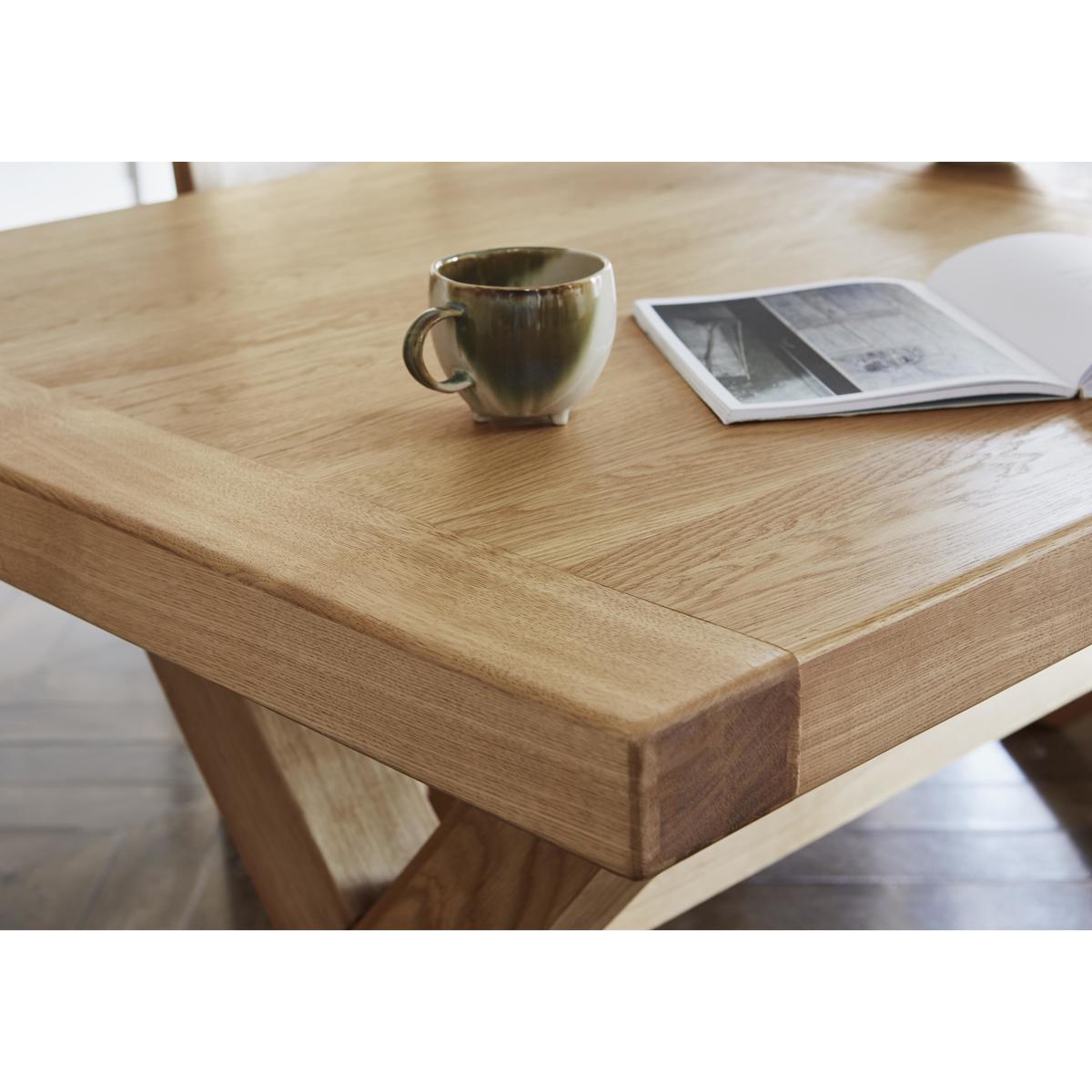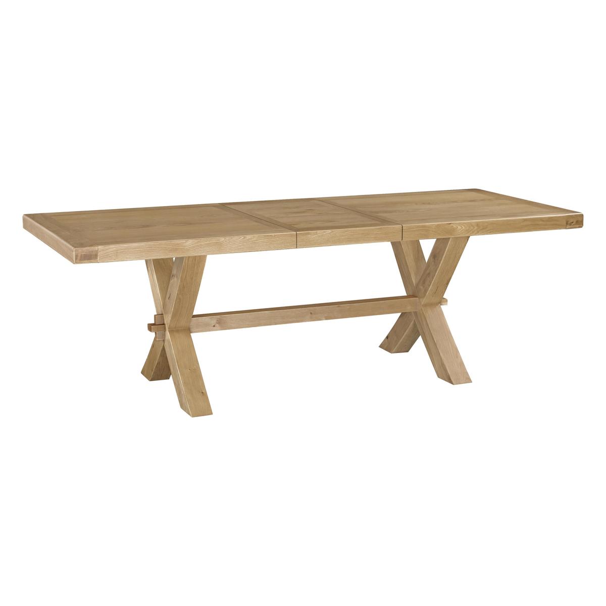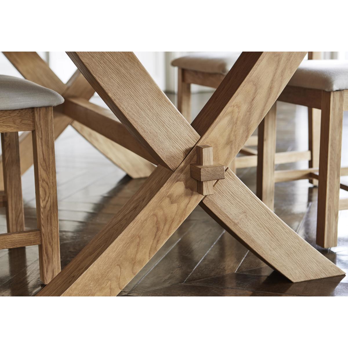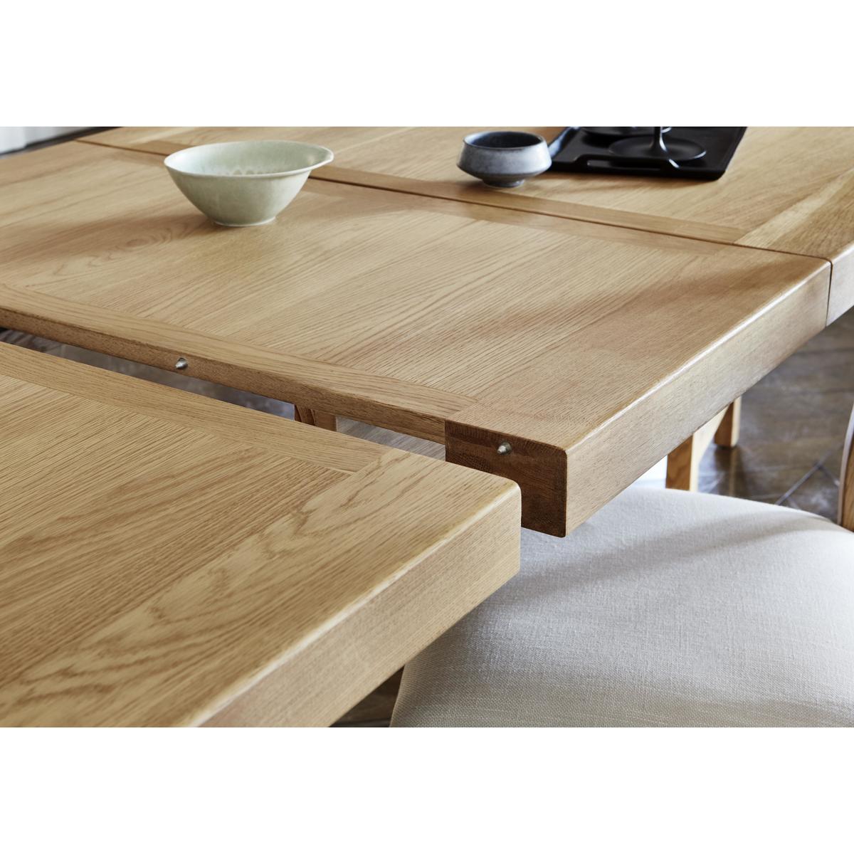 Sturdy and solid, the Keating crossed-leg extending dining table is the quintessential English dining table, beautifully crafted from light oak. Thanks to its timeless look and well-crafted design, this is a table that’s equally at home in your kitchen or dining room. In a nod to traditional furniture design, it features a cross-legged base and a substantial top of oak veneer, and is finished with a light oil that protects and enhances the wood. A large table, it extends to seat eight – the ends of the table smoothly pull apart on metal runners to allow the insertion of the extension leaf, stored within the body of the table. The Keating crossed-leg extending dining table is part of the Keating range of furniture, and pairs with the Keating bench, the button back chair and the slatted chair. Try a combination of all three for a relaxed and casual look. Did you know? Natural wood has unique markings, with some colour variation. The colour and tone of wood improves with age.