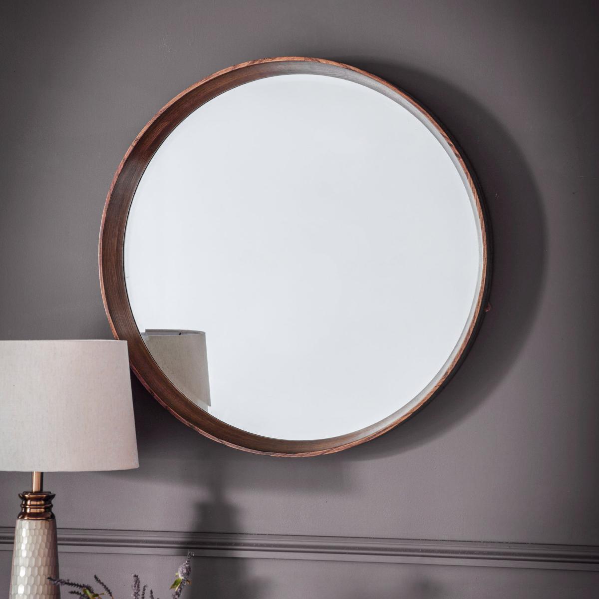 Keaton 100cm Walnut Round Mirror Brown
