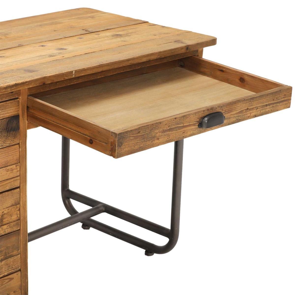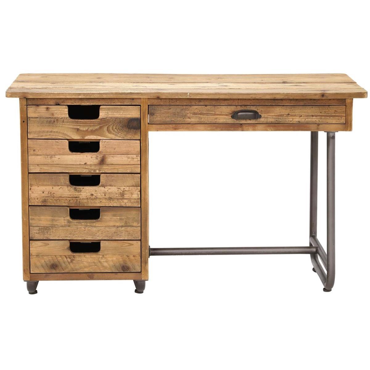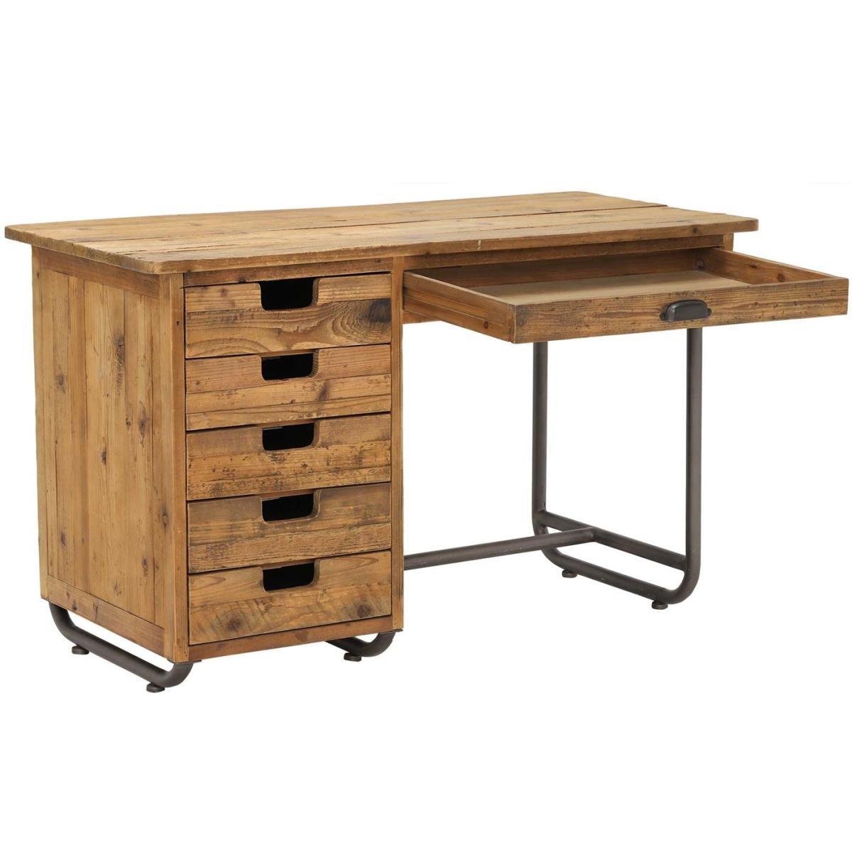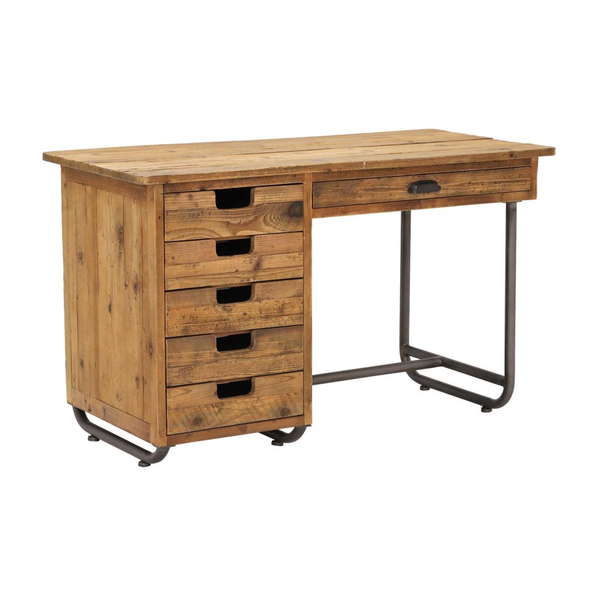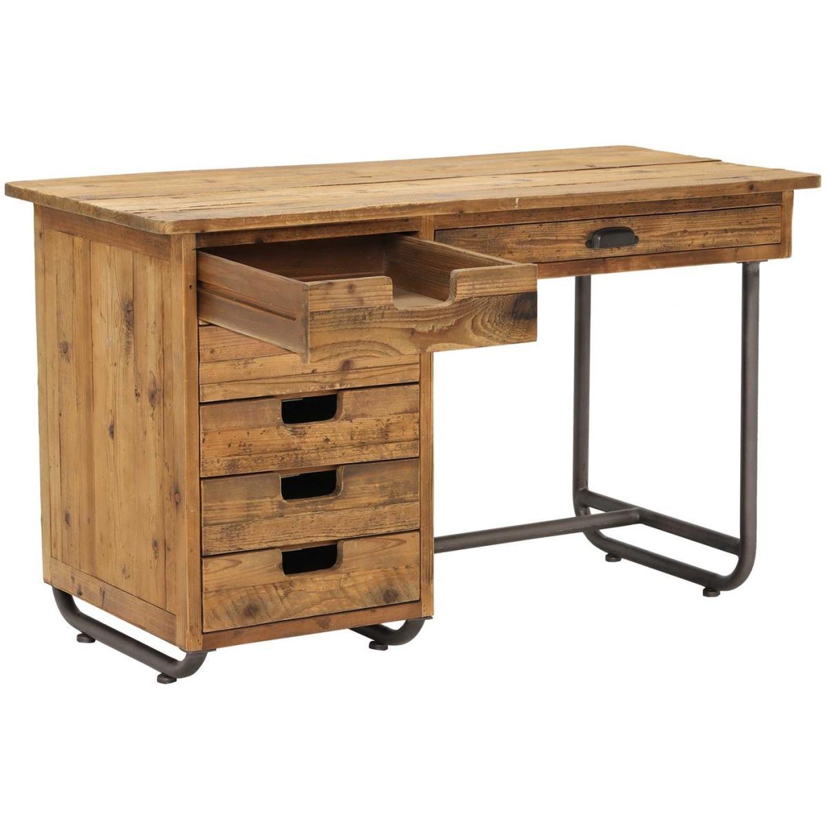 Design. Steeped in modern restoration appeal, the industrial-inspired Keeler desk is crafted from predominantly textured bleached pine with a tubular steel frame. Featuring a multitude of drawers for storing paperwork and stationery, this practical single pedestal desk is sure to add rustic style to your study or office space.