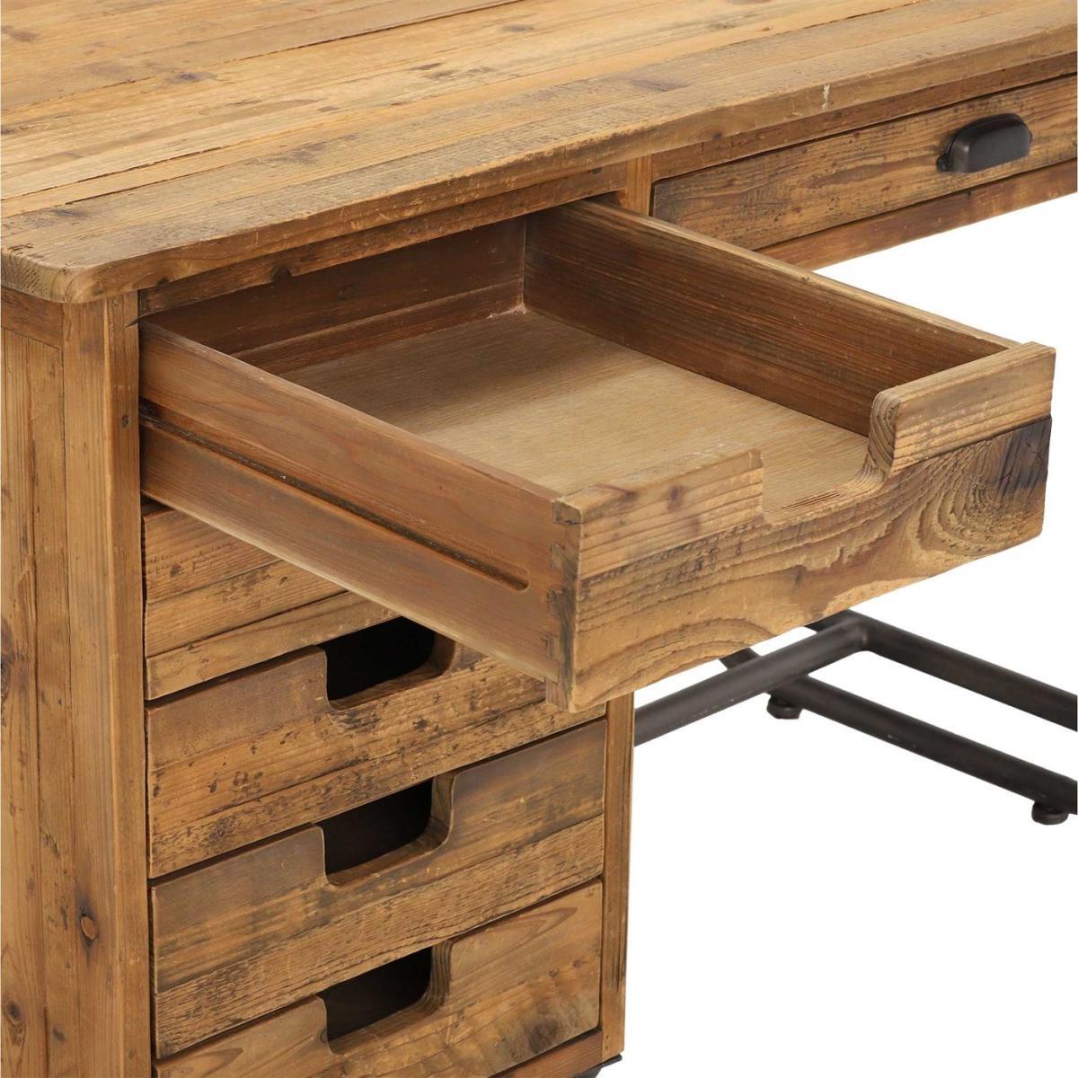 I really like this desk because of its practical yet rustic appeal, making it a versatile piece for a range of interiors-from cosy home offices to contemporary workspace setups. The natural wood finish adds warmth and texture, blending well with both modern minimalism and more eclectic or industrial styles. The 5+1 drawers offer plenty of storage, helping to keep the surface clutter-free and organised. For styling, consider pairing it with brushed metal accessories, vintage office chairs, or even some greenery to soften the look further. It's especially well-suited to spaces that benefit from functional furniture with a touch of character.