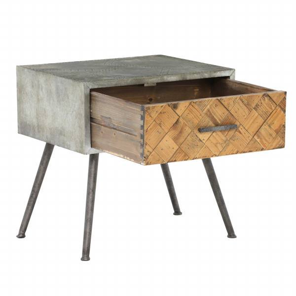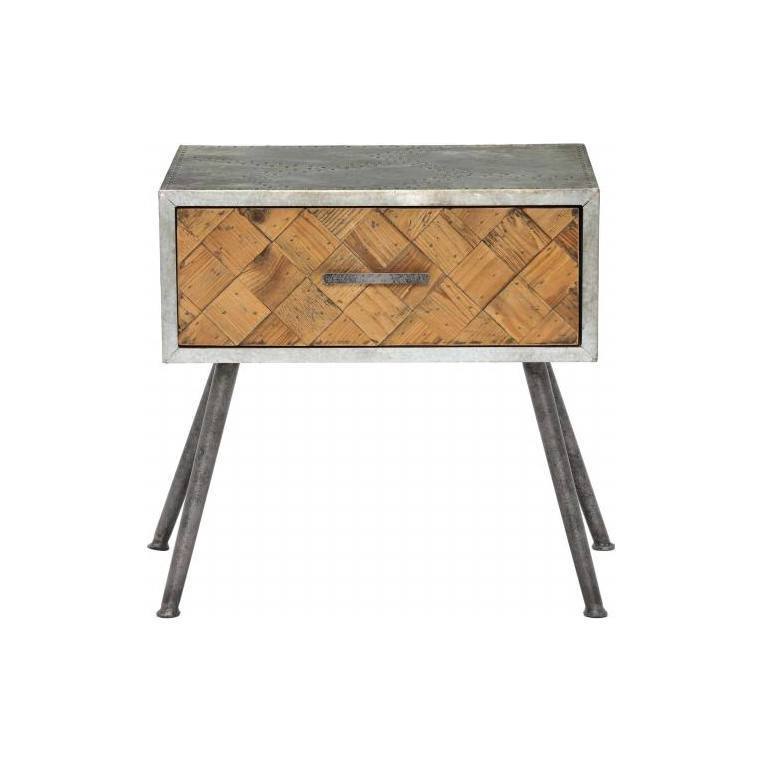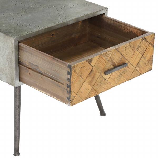 Add an industrial vibe to your home with the Hammond Table from our contemporary Keeler collection. With a shape inspired by Scandinavian design, it features a single drawer made from reclaimed pine and a galvanised metal frame with angled legs and rivet detail. An aged effect adds to its rustic appeal.