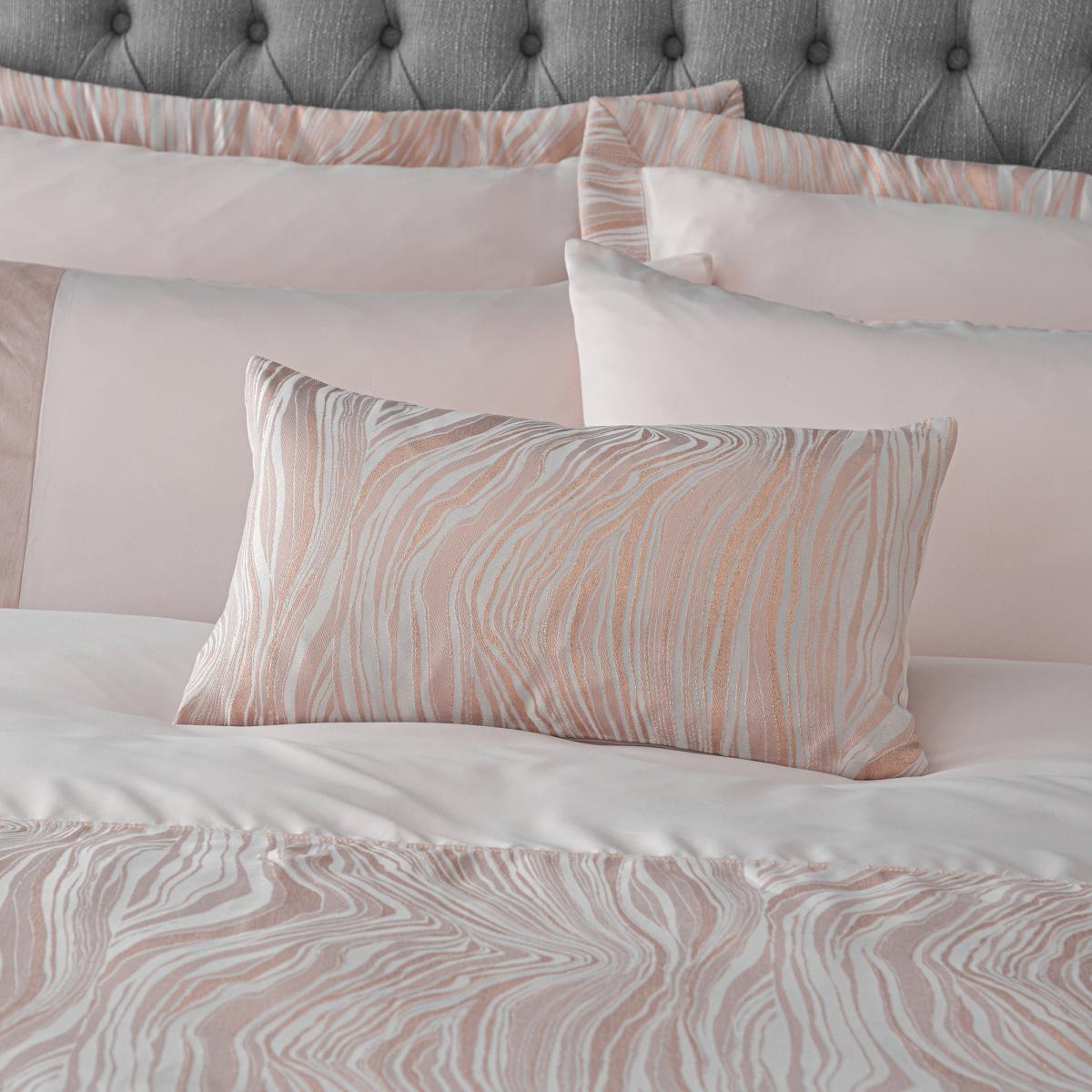 Add a touch of luxury to your bedroom with our elegant Keeley boudoir cushion in a sophisticated pink colourway. Decorated with a stylish marble jacquard woven design, Keeley has been crafted from a soft and durable polyester fabric with easycare properties. Coordinate perfectly with our Keeley duvet cover and bedspread.