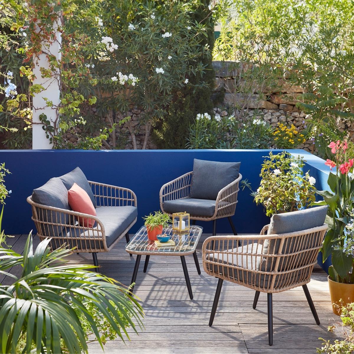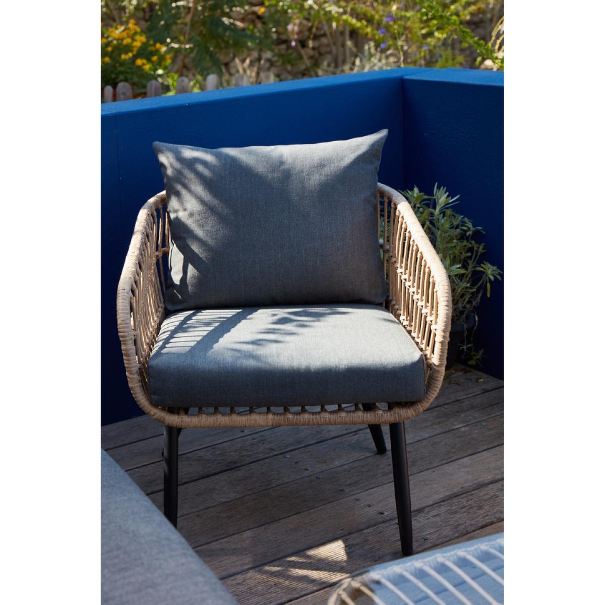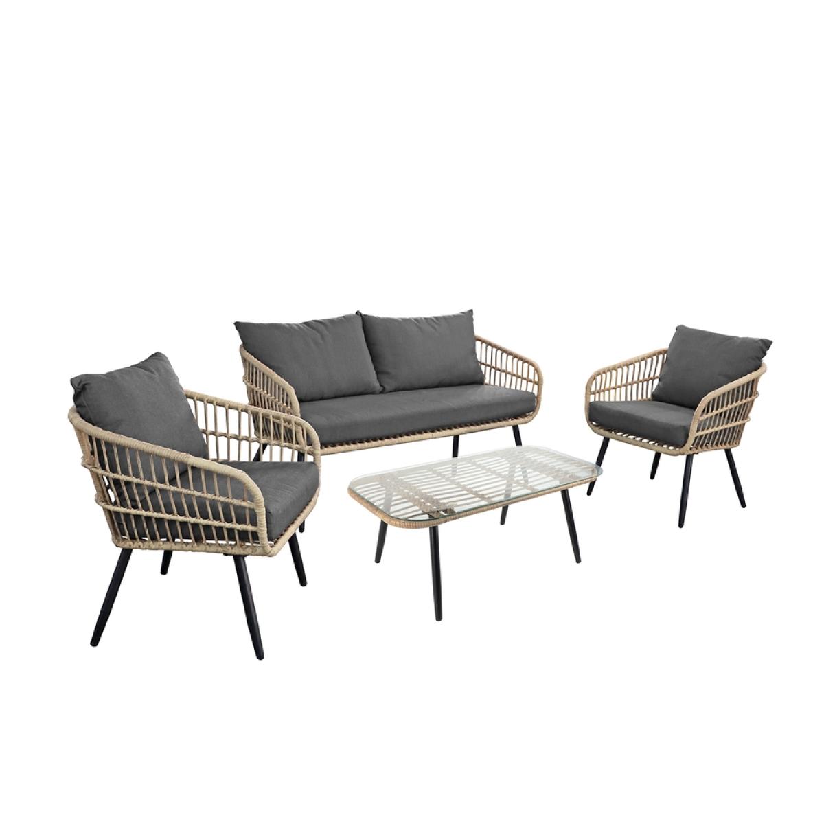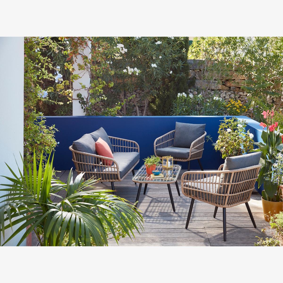 Enhance your outdoor living space with the Keiko Garden Sofa Set. The frame is a natural woven rattan and the thick, soft cushions provide a comfortable and relaxing place for you and your friends and family to unwind. With stylish and sturdy steel tapered legs and removable cushions it's the perfect addition to any garden, patio or deck.