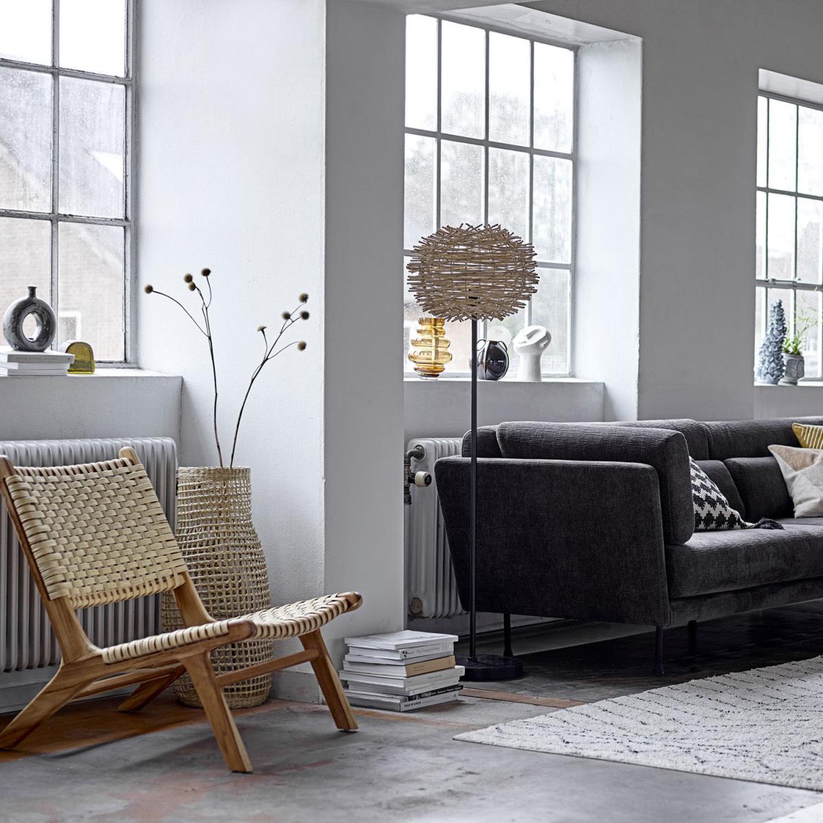 I love this armchair for its combination of natural materials and relaxed, timeless style. The cane and fibres weave gives it a light and airy feel, making it perfect for both modern and bohemian interiors. It works particularly well in sunlit living rooms, reading nooks, or even bedrooms where a touch of natural texture is desired. For styling, consider pairing it with soft, neutral-toned cushions or throws for added comfort, or combine it with rattan accessories and wooden furniture for a cohesive look. Its simple, honest design means it pairs easily with a variety of colour palettes, from earthy tones to more muted schemes, making it a versatile piece for most interiors.