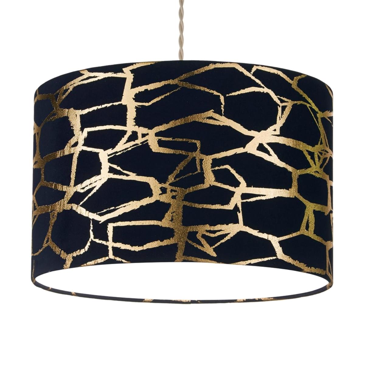 Keira 1-light easy-fit pendant shade, made from navy velvet with gold print. Add a touch of opulence to your lighting with the Keira easy-fit pendant shade. Crafted from luxurious navy velvet, this shade features a striking gold print that brings a bold, elegant flair to your decor. The rich colour palette and textured finish create a sophisticated look, perfect for enhancing any room. Designed for ease and versatility, the Keira pendant shade fits effortlessly onto existing light fixtures, making it an ideal choice for a quick and stylish update. Whether in a living room, bedroom or dining space, this shade transforms your lighting into a statement piece. Keira 1-light easy-fit pendant shade, made from navy velvet with gold print. Add a touch of opulence to your lighting with the Keira easy-fit pendant shade. Crafted from luxurious navy velvet, this shade features a striking gold print that brings a bold, elegant flair to your decor. The rich colour palette and textured finish create a sophisticated look, perfect for enhancing any room. Designed for ease and versatility, the Keira pendant shade fits effortlessly onto existing light fixtures, making it an ideal choice for a quick and stylish update. Whether in a living room, bedroom or dining space, this shade transforms your lighting into a statement piece.