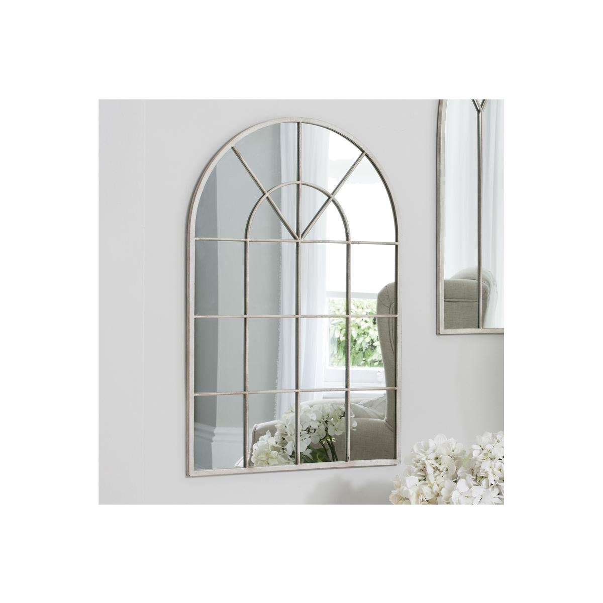 The Kelford is an arched top window style mirror finished in cream paint.