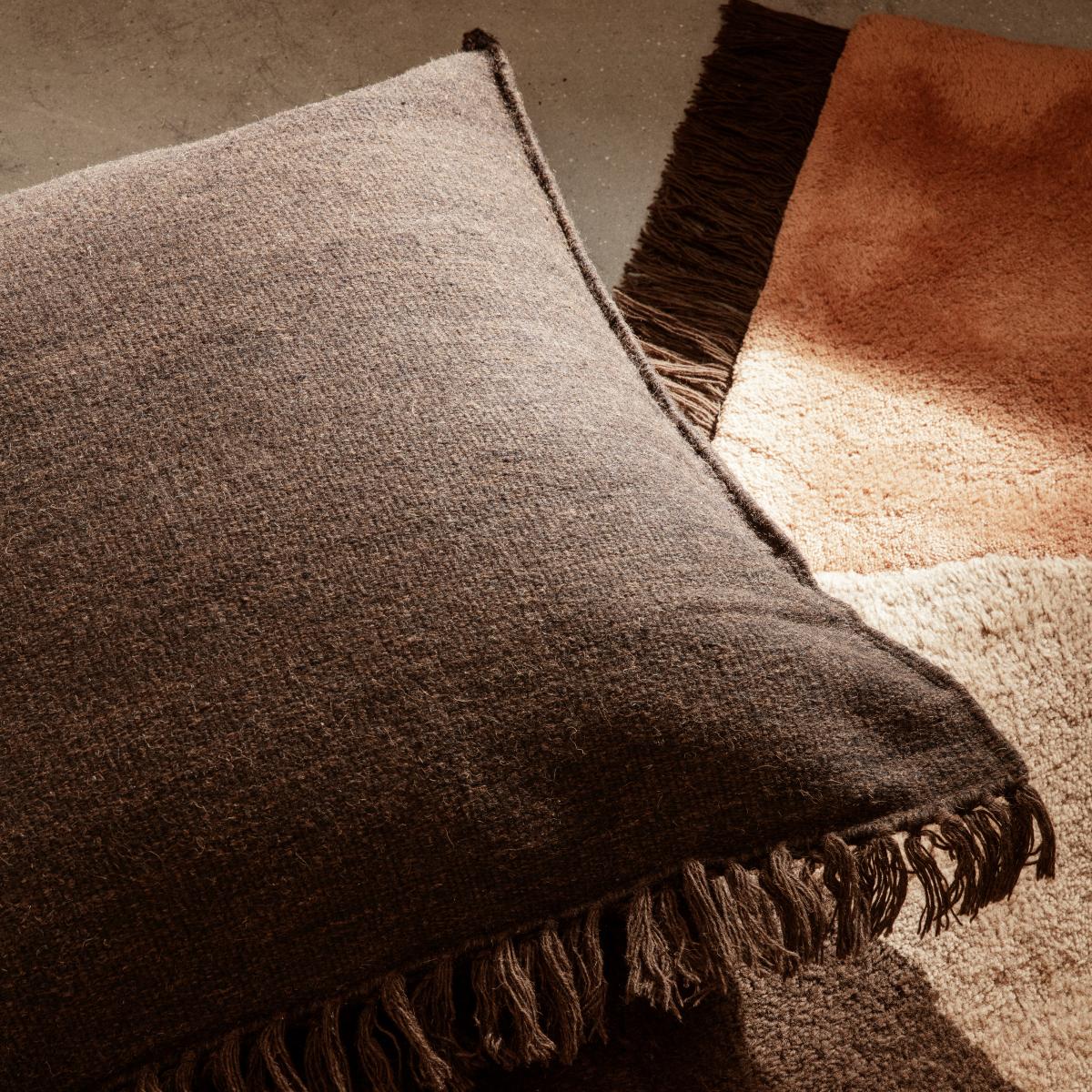 I love this cushion for its versatile, understated appeal; the dark melange tone makes it a great anchor piece that can effortlessly complement both neutral and richer colour palettes. The fringed border adds a touch of texture and visual interest, making it suitable for relaxed, bohemian, or Scandinavian-inspired interiors. It works particularly well paired with natural fabrics like linen or wool, and looks equally good on a sofa or bed. For practical styling, consider layering it with patterned or plain cushions in contrasting textures to create depth. Its muted colour and tactile fringe make it a reliable choice for adding cosy, inviting accents without overpowering the overall room aesthetic.