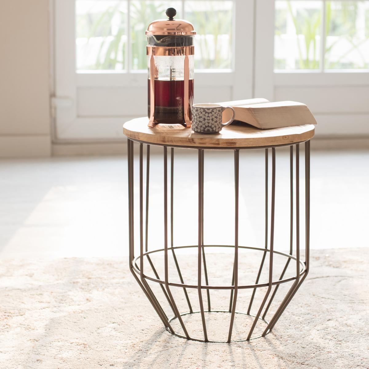 ALL ABOUT THE BASEA statement metal base Yes please. Mango wood au naturel Absolutely. An unexpected mix of materials this side table racks up all style points in our book Skilled artisans hand turn metal into a statement structure that holds up a chunky circular wooden top and looks really good doing it. It is the perfect perch for your drinks lamps books really anything you want close at hand. Crafted from real wood the solid top super durable retains its organic energy and warmth. It is like a small connection to the natural world a detail we love