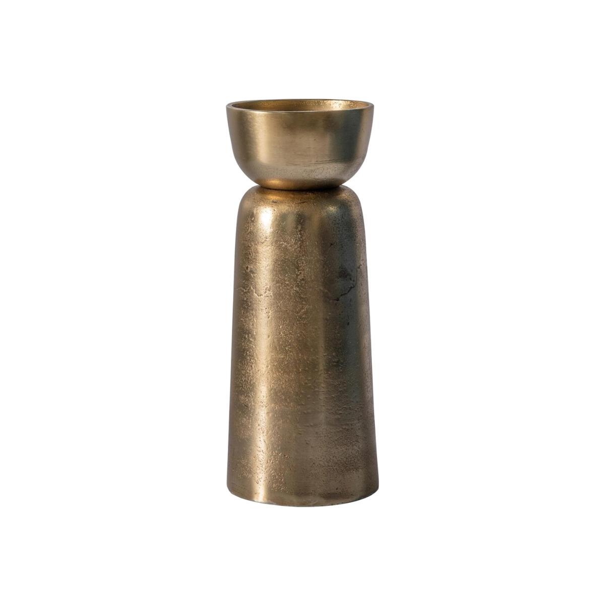 Light up your home with the Kellen Golden Candle Holder, this amazing sand casted aluminium candle holder is here to add a spash of intrigue to your home. Pair with the coordinating candle holders and vases, place next to one of our amazing sofas, and your ready to go.