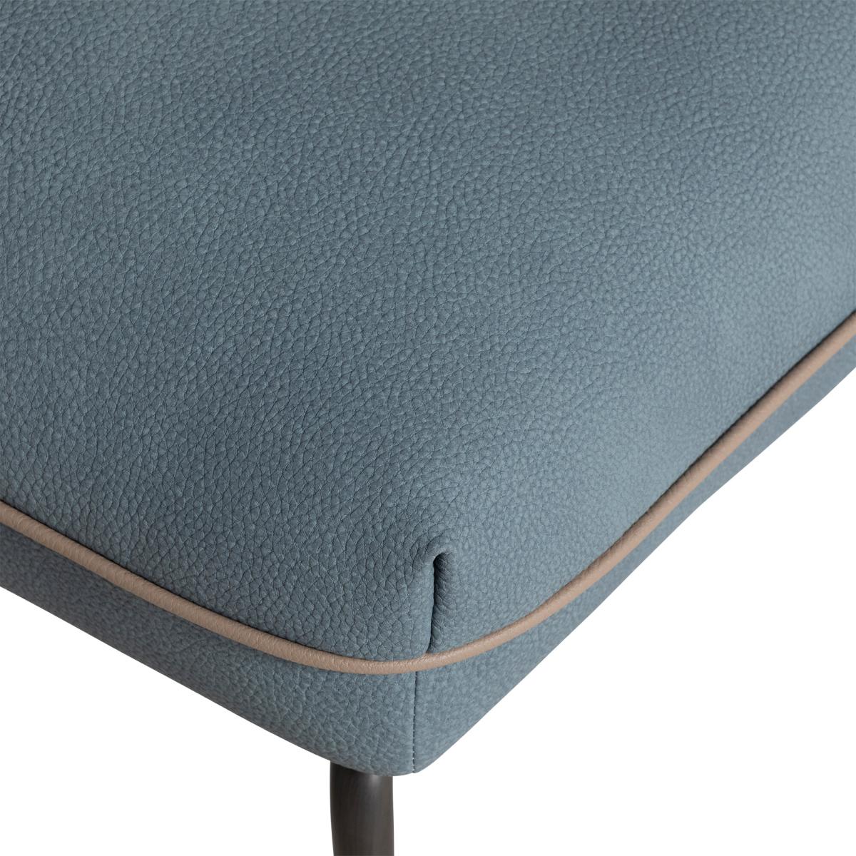 The Frame Features A Robust Steel Construction, Elegantly Finished With A Vintage Touch. Its Weathered, Antique Appearance Adds Character And Charm, Seamlessly Blending Strength With Timeless Style For A Unique, Sophisticated Look. Keller Right Hand Facing Corner Bench, Blue | Barker & Stonehouse