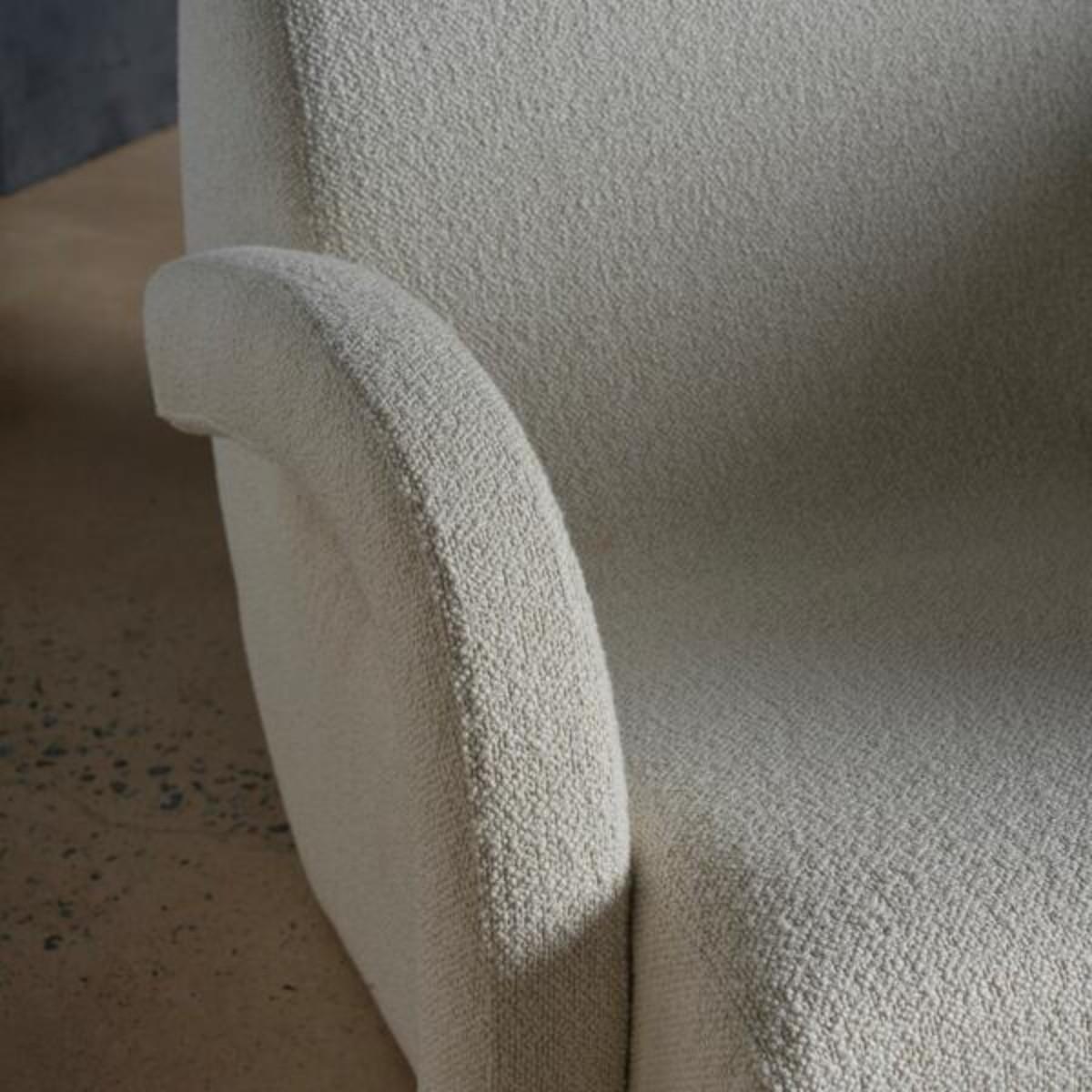 I’m a fan of the Leo chair for its gently sculpted arms and low, lounge-style seat - it’s a statement without shouting. The neutral boucle fabric makes it easy to slot into a variety of schemes, from pared-back Scandi to restrained contemporary, and its solid form holds its own against both sleek metal accents and warmer timber pieces. Styling tip: position the Leo chair beside a slimline side table and add a single textured cushion or a leather-trimmed throw to introduce subtle contrast. Keep surrounding décor pared back - a simple floor lamp or a cluster of monochrome prints will let its curves take centre stage without overcrowding the space.