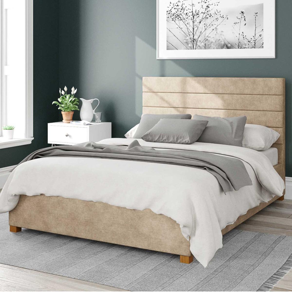 * Large storage area with fabric dust protection sheet* Hands free access to storage (mattresses up to 60kg) * Clean lines headboard design* Kimyo linen fabric* Hand upholstered with deep padding* Solid hardwood feet* Manufactured in the UK* Different colour options available With a linen texture and ottoman storage space, this bed is the perfect sleeping solution for your smaller bedroom space. The Kelly Fabric Ottoman Bed features beautiful clean lines and exudes minimalist yet elegant style. The deep padded headboard boasts a sleek and clean aesthetic, while the stylish solid hard wood feet add a touch of elegance. With its gas lift pistons, the ottoman bed provides ample storage space that can be easily accessed with minimal effort. Once the mechanism is open, it will hold in place, allowing for hands-free access to the spacious storage area. For your added convenience, the bed comes complete with a dust sheet to keep the storage area clean. It's worth noting that the storage area is not a boarded base. To provide you with the ultimate comfort and support, the bed features quality spring slats, ensuring you have a good night's sleep. And with a mechanism capable of lifting a mattress weighing up to 60kg, you can rest easy knowing you're getting the best in practicality and durability. The bed is supplied flat pack, and assembly is made easier with two people. It takes just 1-2 hours to assemble and meets all UK safety standards. We've also gone above and beyond by conducting non-mandatory structural testing, giving you peace of mind knowing your new bed is built to last.