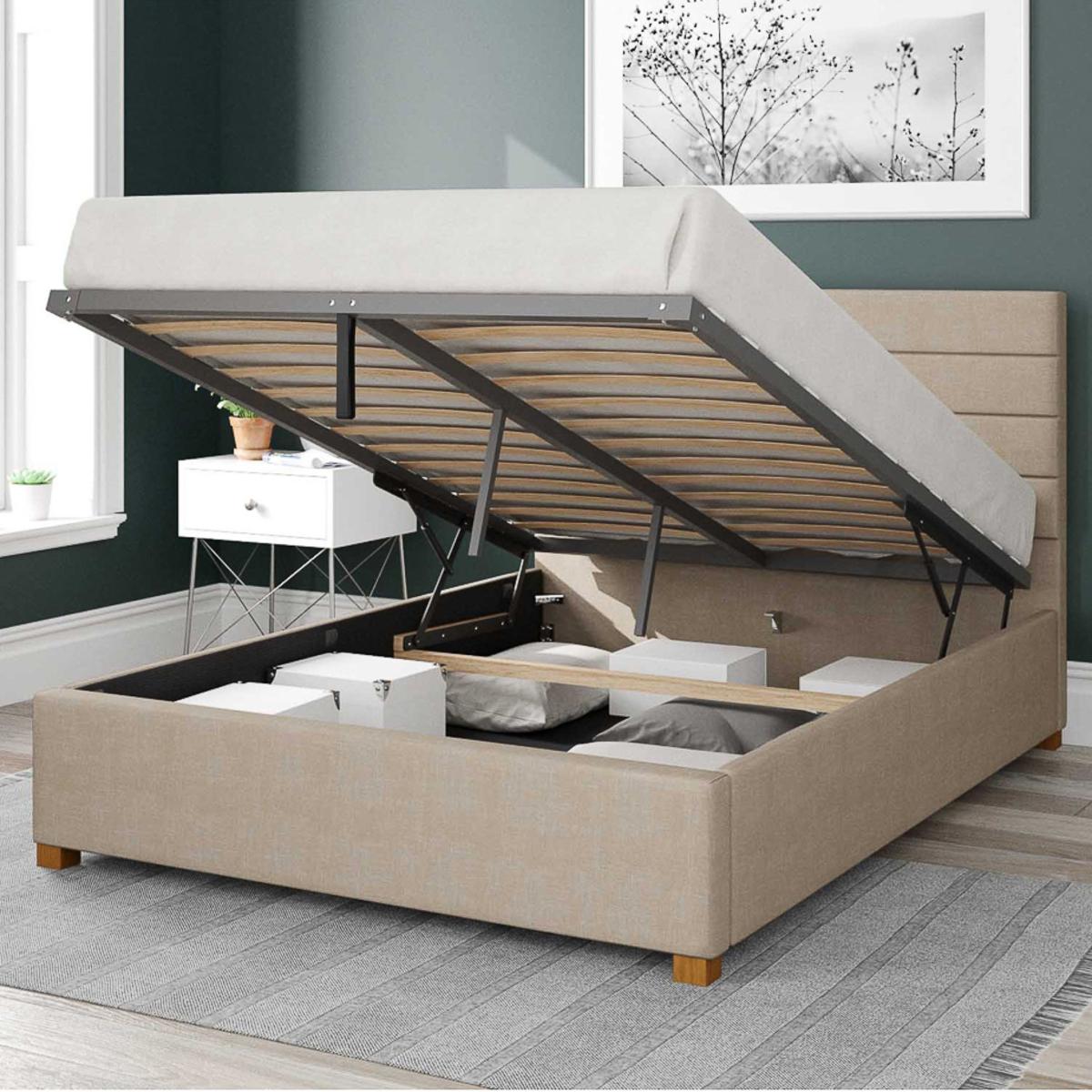 * Large storage area with fabric dust protection sheet* Hands free access to storage (mattresses up to 60kg) * Clean lines headboard design* Malham weave fabric* Hand upholstered with deep padding* Solid hardwood feet* Manufactured in the UK* Different colour options available A storage solution, this bed has been crafted with a durable Malham weave fabric which will last your for years to come. It's beautiful clean lines exudes minimalist yet elegant style. The deep padded headboard boasts a sleek and clean aesthetic, while the stylish solid hard wood feet add a touch of elegance. With its gas lift pistons, the ottoman bed provides ample storage space that can be easily accessed with minimal effort. Once the mechanism is open, it will hold in place, allowing for hands-free access to the spacious storage area. For your added convenience, the bed comes complete with a dust sheet to keep the storage area clean. It's worth noting that the storage area is not a boarded base. To provide you with the ultimate comfort and support, the bed features quality spring slats, ensuring you have a good night's sleep. And with a mechanism capable of lifting a mattress weighing up to 60kg, you can rest easy knowing you're getting the best in practicality and durability. The bed is supplied flat pack, and assembly is made easier with two people. It takes just 1-2 hours to assemble and meets all UK safety standards. We've also gone above and beyond by conducting non-mandatory structural testing, giving you peace of mind knowing your new bed is built to last.