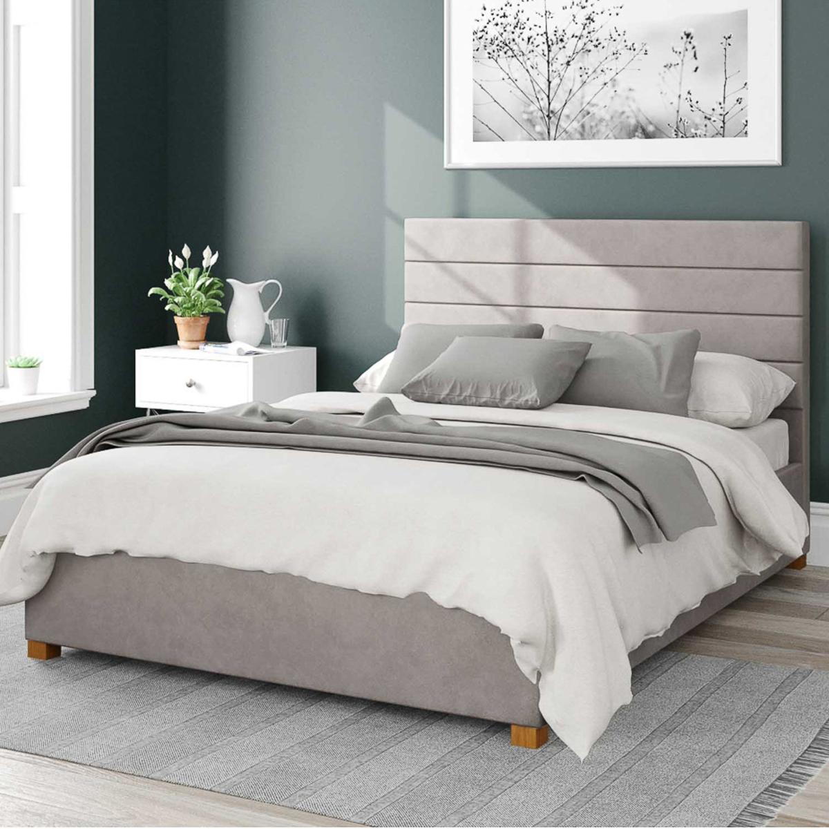 * Large storage area with fabric dust protection sheet* Hands free access to storage (mattresses up to 60kg) * Clean lines headboard design* Plush velvet fabric* Hand upholstered with deep padding* Solid hardwood feet* Manufactured in the UK* Different colour options available While your bedroom remains stylish, you will be blessed with the opportunity for extra storage space with this ottoman bed. The Kelly Fabric Ottoman Bed features beautiful clean lines and exudes minimalist yet elegant style. The deep padded headboard boasts a sleek and clean aesthetic, while the stylish solid hard wood feet add a touch of elegance. With its gas lift pistons, the ottoman bed provides ample storage space that can be easily accessed with minimal effort. Once the mechanism is open, it will hold in place, allowing for hands-free access to the spacious storage area. For your added convenience, the bed comes complete with a dust sheet to keep the storage area clean. It's worth noting that the storage area is not a boarded base. To provide you with the ultimate comfort and support, the bed features quality spring slats, ensuring you have a good night's sleep. And with a mechanism capable of lifting a mattress weighing up to 60kg, you can rest easy knowing you're getting the best in practicality and durability. The bed is supplied flat pack, and assembly is made easier with two people. It takes just 1-2 hours to assemble and meets all UK safety standards. We've also gone above and beyond by conducting non-mandatory structural testing, giving you peace of mind knowing your new bed is built to last.