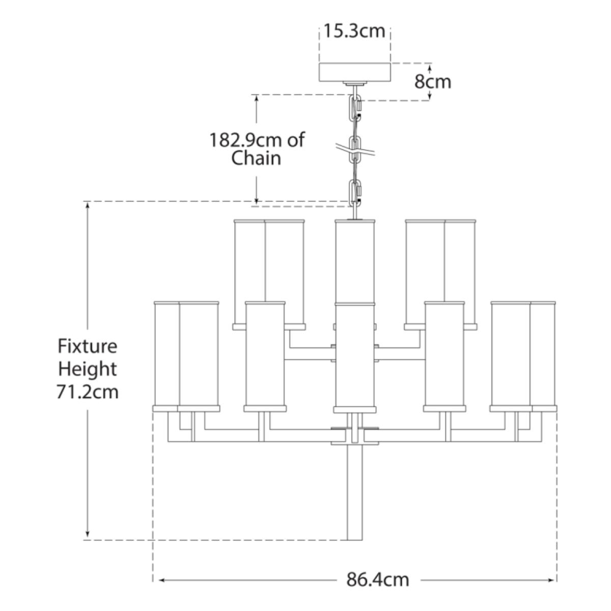 The highlight of this stunning double-tiered chandelier is designer Kelly Wearstler's signature fractured glass; carefully cast with a textured finish, it's been used to create the modern tubular surrounds housing the chandelier's many light sources. Sleek, angled arms radiate from the chandelier's central spoke, which is elongated beneath the tiers to remarkably contemporary effect. The structure is exquisitely crafted in bronze, and available in your choice of an antique burnished brass or bronze finish.