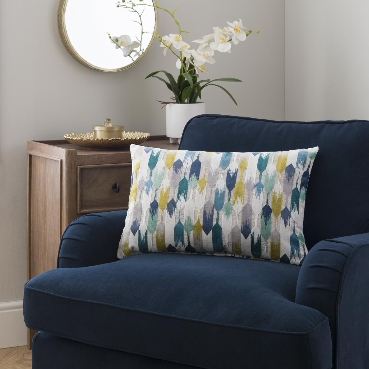 I love how the Kelso Cut Velvet cushion in navy adds a rich, sophisticated touch to a variety of interiors. Its deep hue makes it versatile for both modern and traditional schemes, especially those with a cooler or neutral palette. This cushion works particularly well on velvet or upholstery fabrics, offering a luxe, tactile contrast. Practical styling tips include pairing it with lighter-toned cushions for a layered look or placing it on a neutral sofa to add depth. It’s perfect for introducing a pop of colour and texture without overwhelming the space, making it a great styling choice for living rooms looking for a bit of understated elegance.