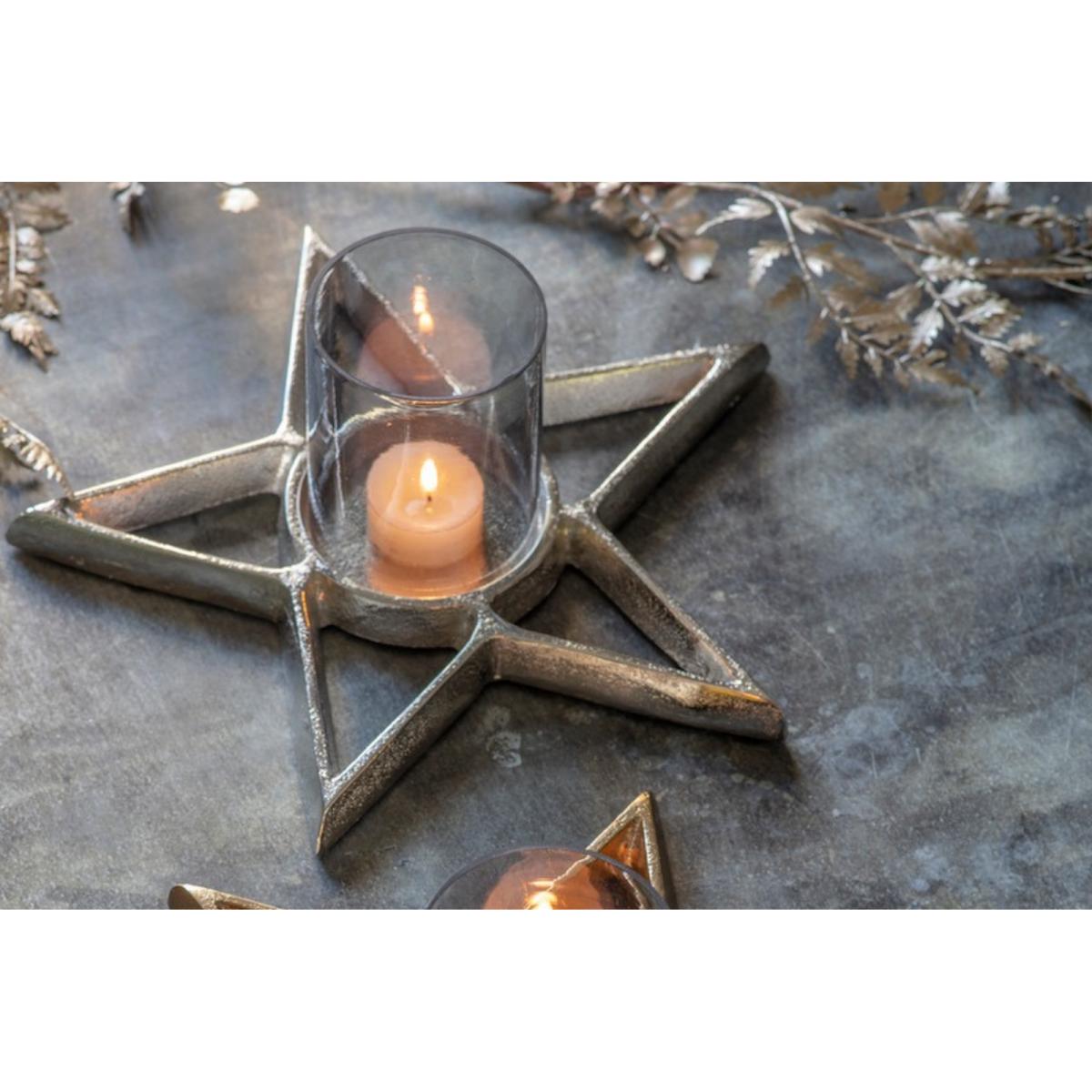 Light up your home with the Kelso Silver Star Candle Holder, this amazing starry aluminium and glass candle holder is here to add a spash of intrigue to your home. Pair with the matching Kelso Golden Star Candle Holder place next to one of our amazing glass vases, and your ready to entertain.