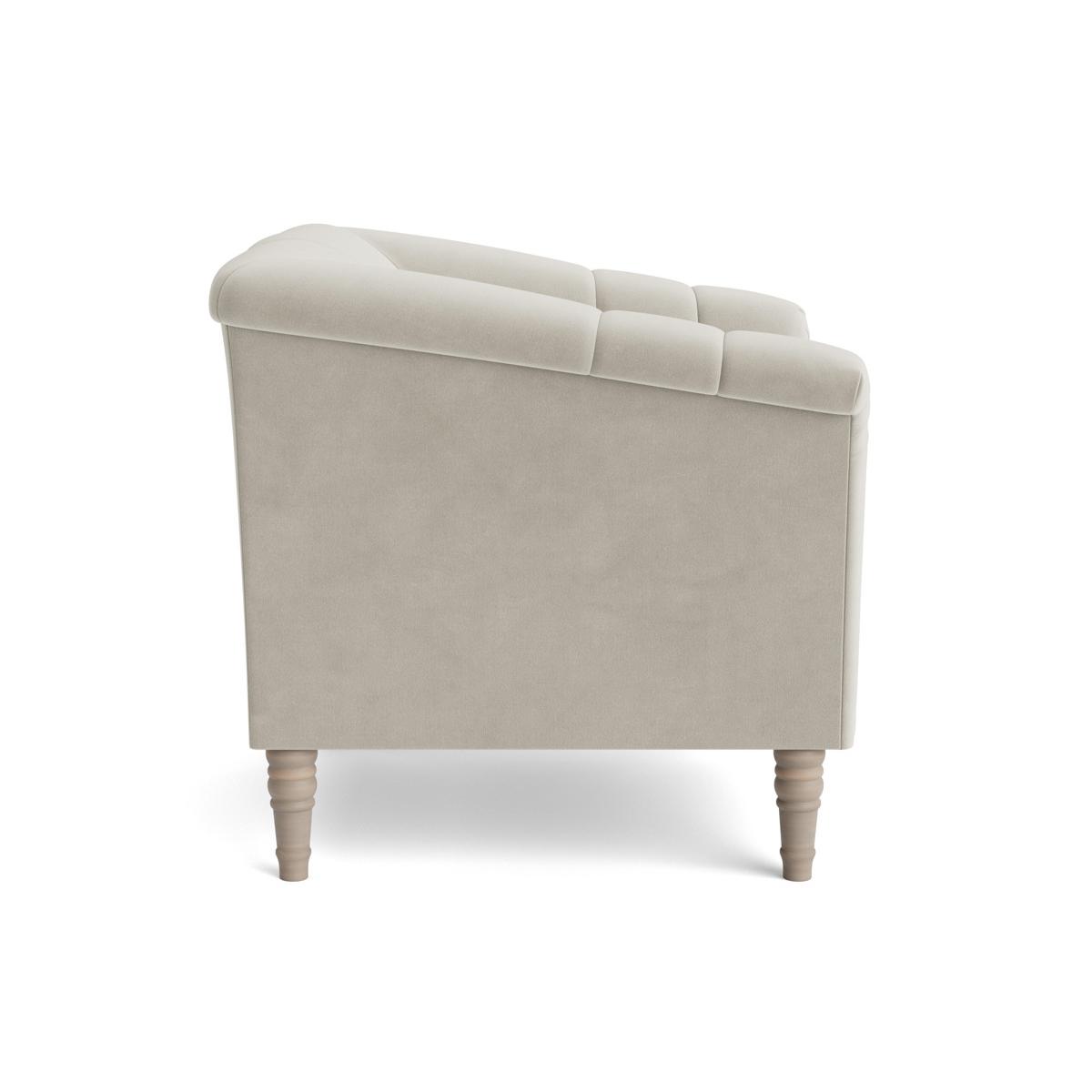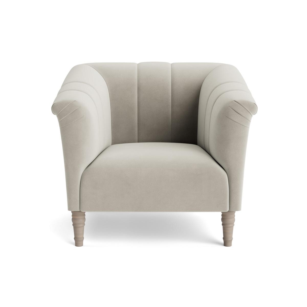Deep vertical channels create a sculpted feminine outline across our Kemi range which will bring a sophisticated touch of old school glamour to your living space. An elegant slope from back to arm tip, hand pleated finishing and turned polished legs add engaging refinement. The Kemi armchair features a form fitted back and sleek fixed seat which ensure it retains a smart appearance. Our Kemi collection can be upholstered in a choice of 34 distinctive shades and six fabrics to suit your style. Read our Upholstery FAQs View our full Upholstery Terms and Conditions