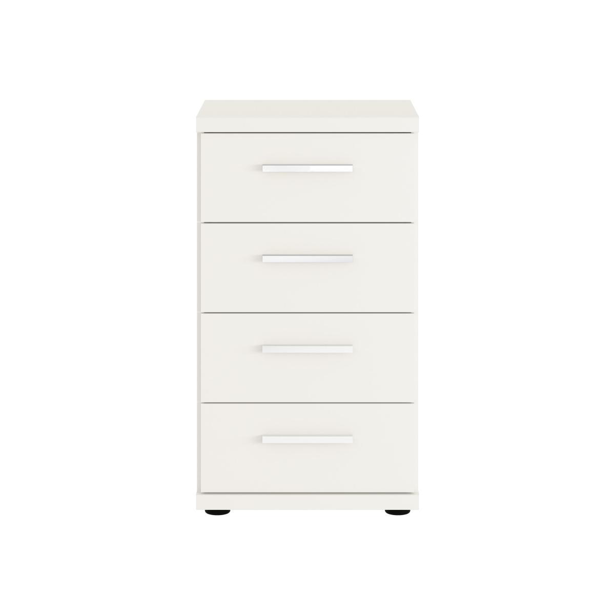 Transform your bedroom with the stylish contemporary Wiemann Kempton bedroom furniture collection. Designed to look like fitted furniture, the range’s semi-fitted wardrobes have clean angular lines, Shaker-style door panelling and simple corniced tops, and are available with mirrored doors. The coordinating chests of drawers, minimalist in style, have roomy drawers and, like the wardrobes, matt silver metallic handles. Choose white or Furniture Village-exclusive champagne. The range includes a wide choice of wardrobes from two-door to five door and both narrow and wide chests of drawers. It’s a very practical choice whatever the size and shape of your bedroom. Designed and built in Germany by Wiemann. Proportioned for a more compact room, this narrow chest of drawers combines sleek modern style with plenty of useful storage. Built to last in Germany by furniture experts Wiemann. Why you’ll love it. Contemporary bedroom furniture that’s sleek and stylish. Arrives fully assembled. Choose white or Furniture Village-exclusive champagne. Exceptional quality and outstanding value for money. Made to order in Germany by Wiemann. What you need to know. Metal drawer handles have a matt silver finish. The Wiemann Kempton range includes four different chests of drawers. Complete the look with a Wiemann Kempton wardrobe.
