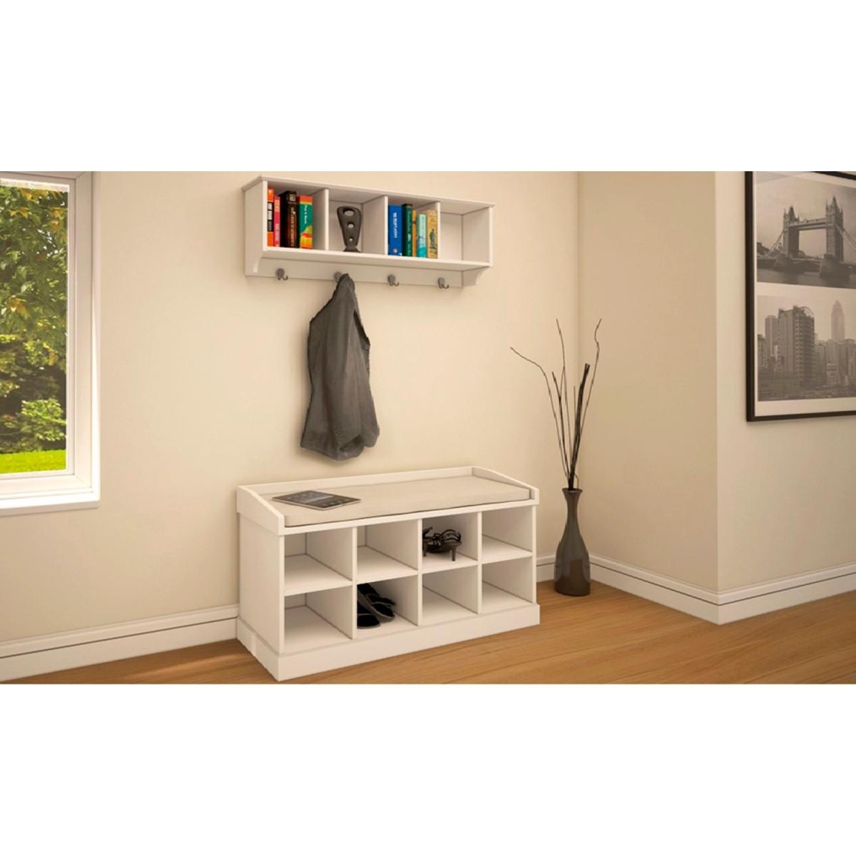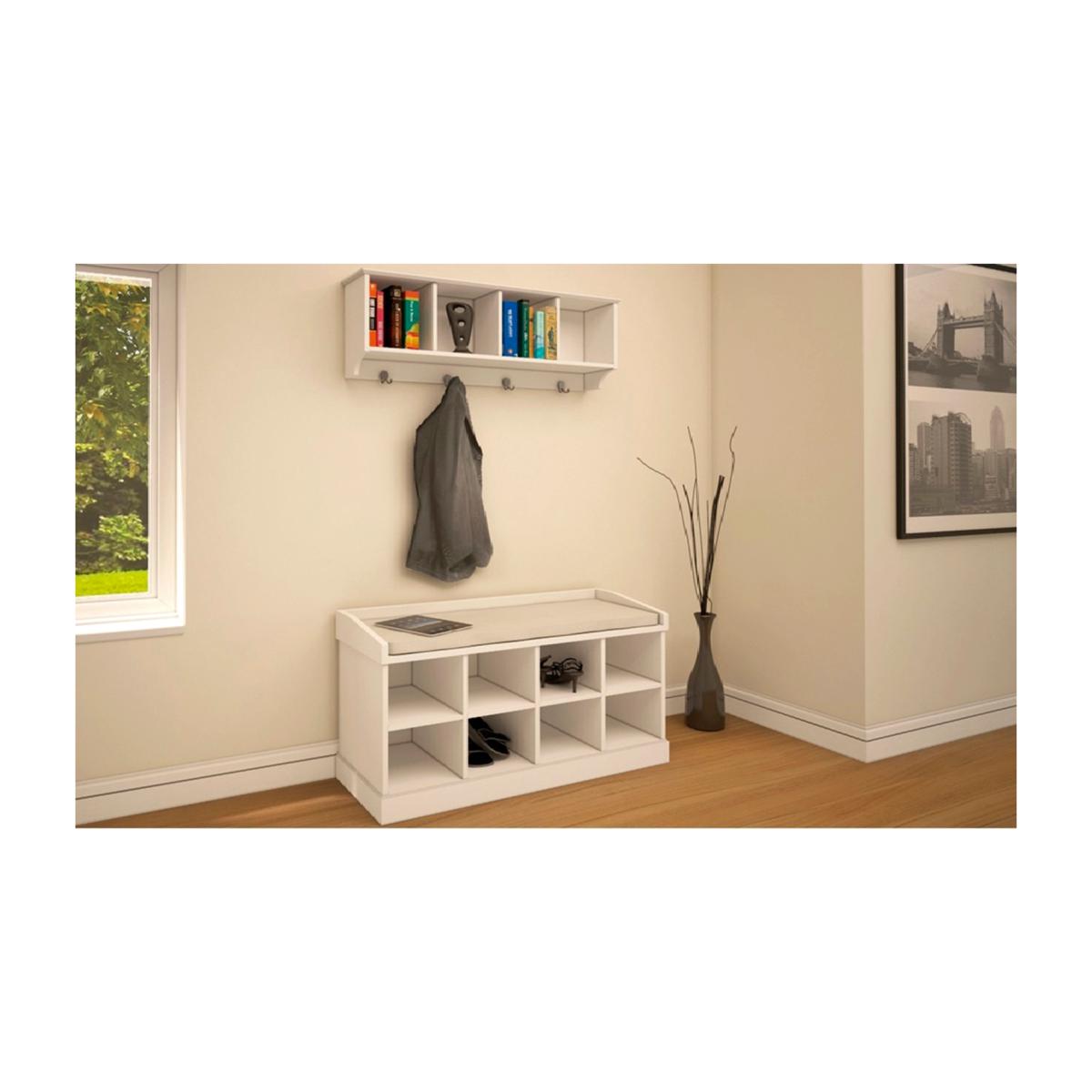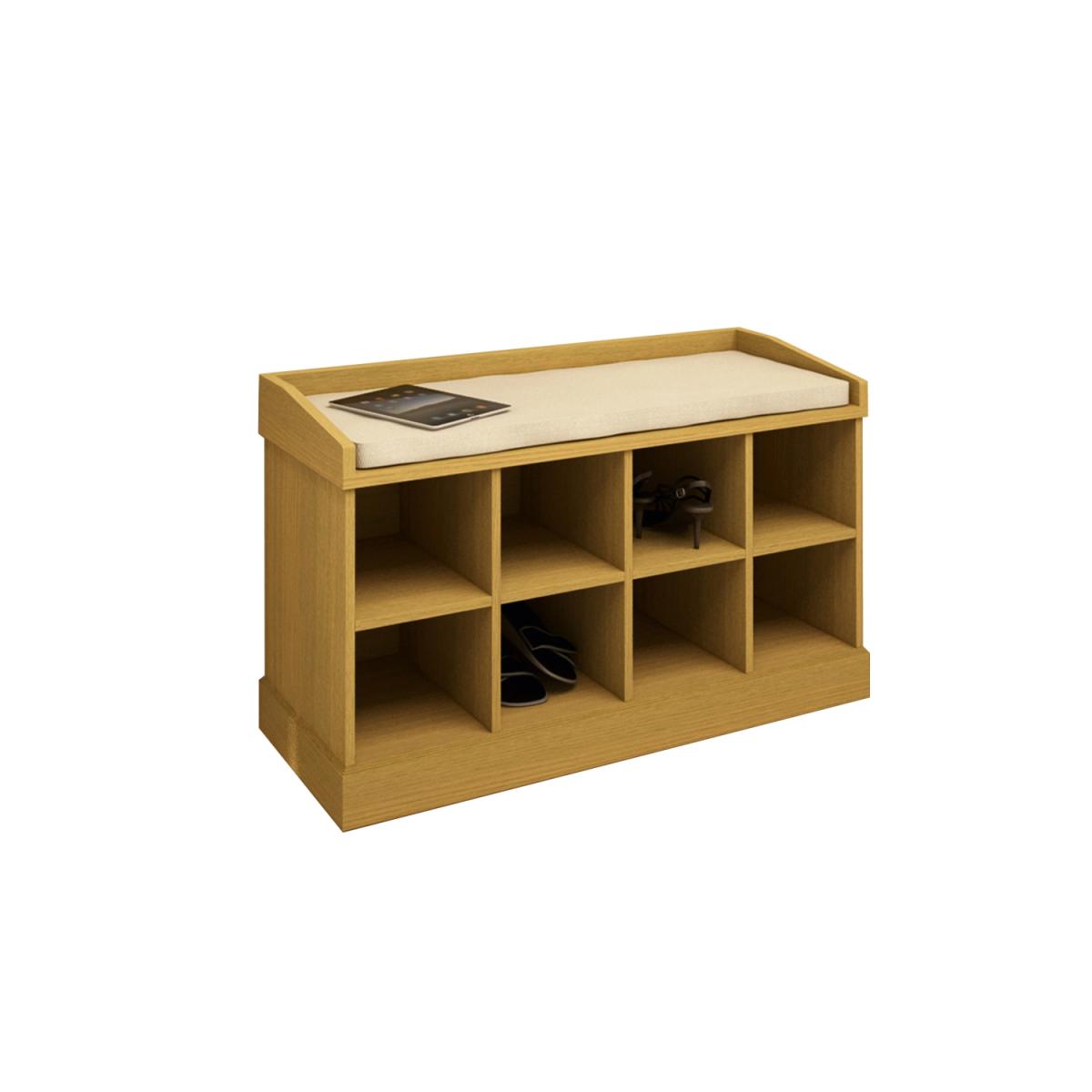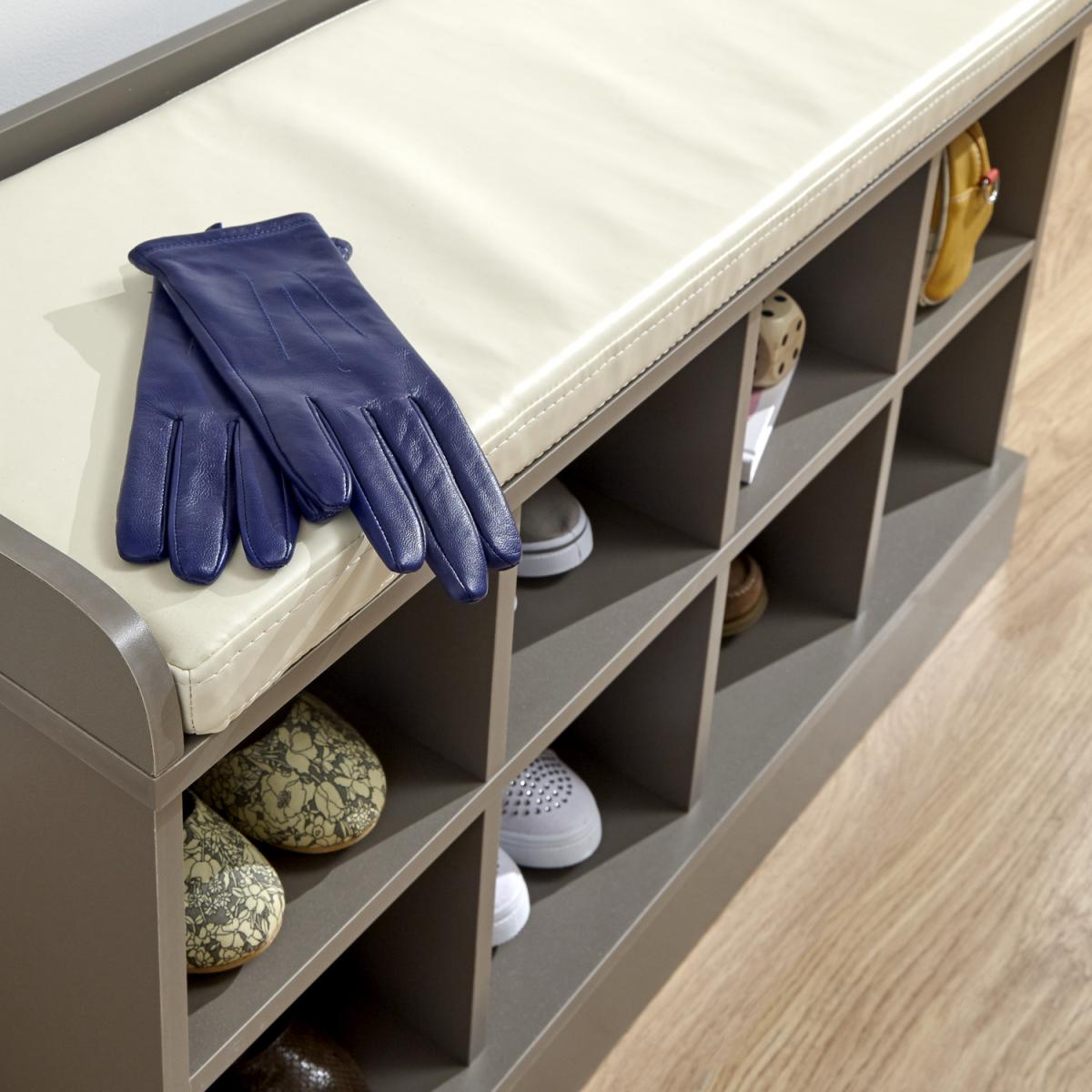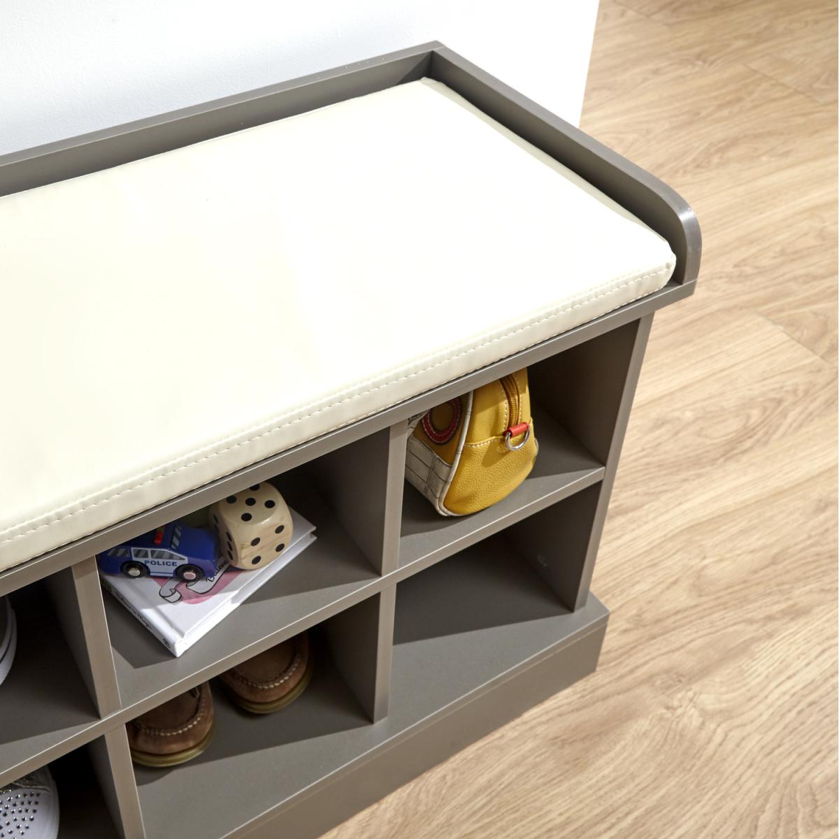 This gorgeous Kempton Shoe Bench will make untidy shoes a thing of the past. Stylish and practical, this storage unit will make keeping your home tidy a breeze. The bench will proudly display your shoes, allowing you to see them all and easily select a pair. When you've picked out a winning pair you can sit on the cushioned top to put them on with ease. Simple colours are combined with an attractive neutral cushion, giving the cabinet a contemporary feel. The piece is made from a quality, veneered particleboard, offering a sturdy and durable construction for a long-lasting addition in any room. This cabinet with its sleek, modern design will offer a touch of modern style to your home.