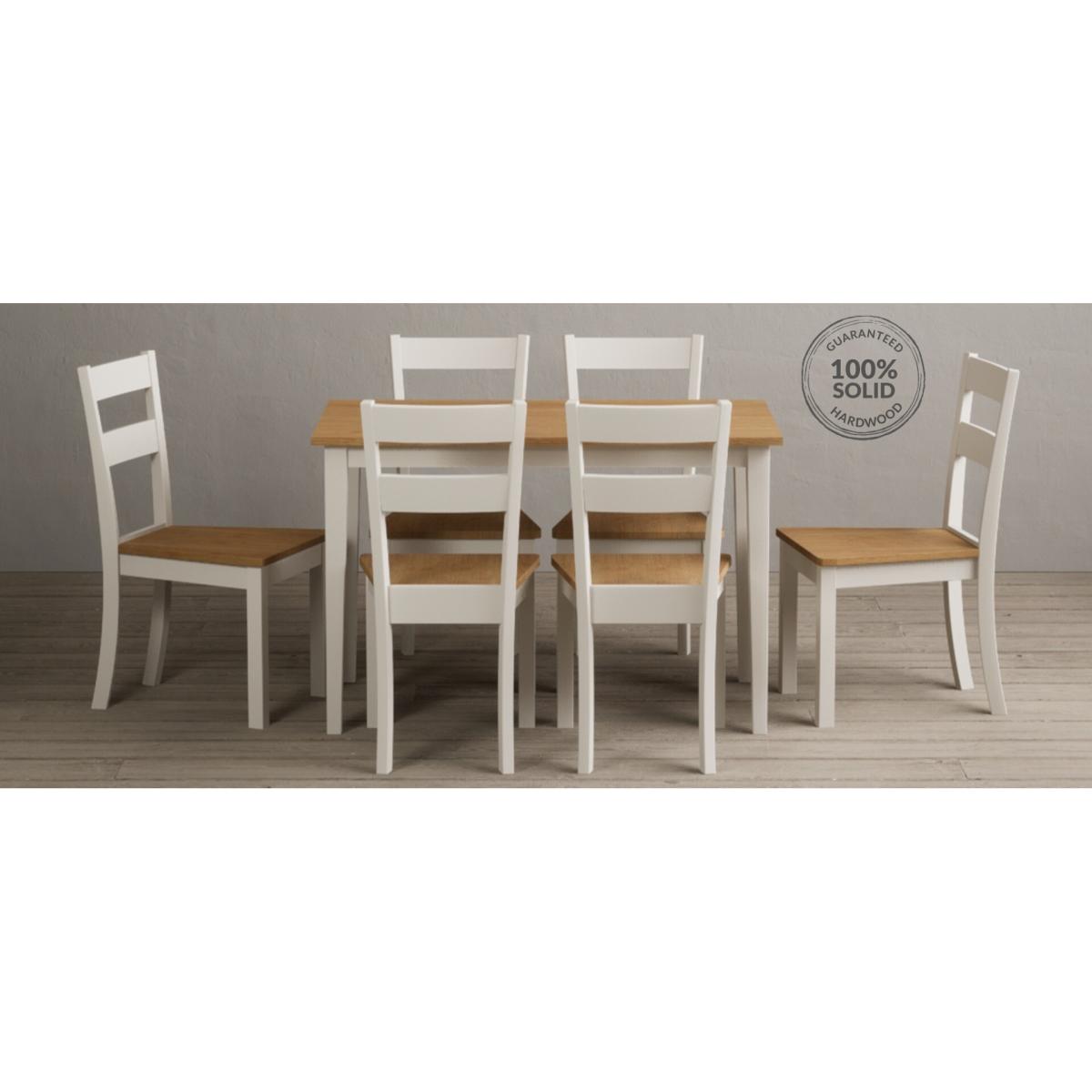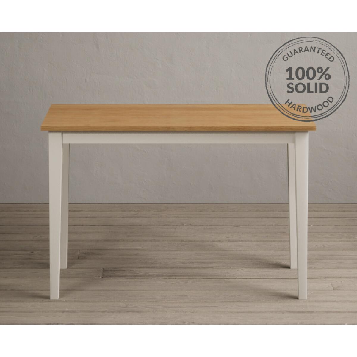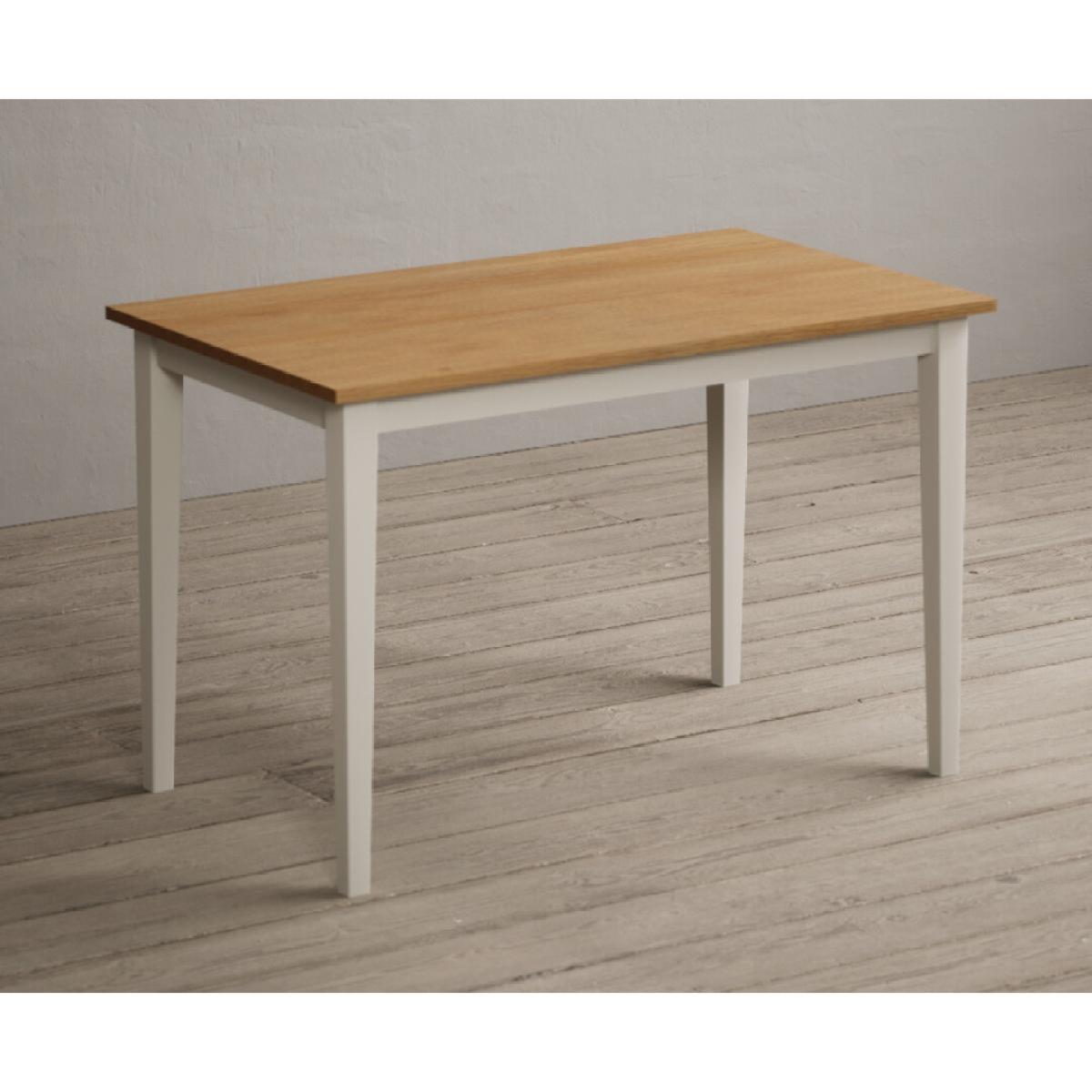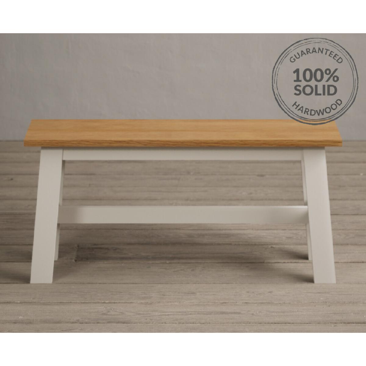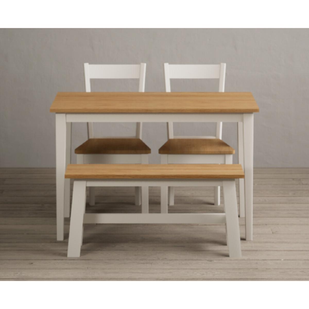 Kendal 115cm Solid Oak and Cream Painted Dining Table with Kendal Chairs and Benches is a stylish dining set featuring a painted solid hardwood dining table with a solid oak tabletop matched with solid hardwood chairs and benches.