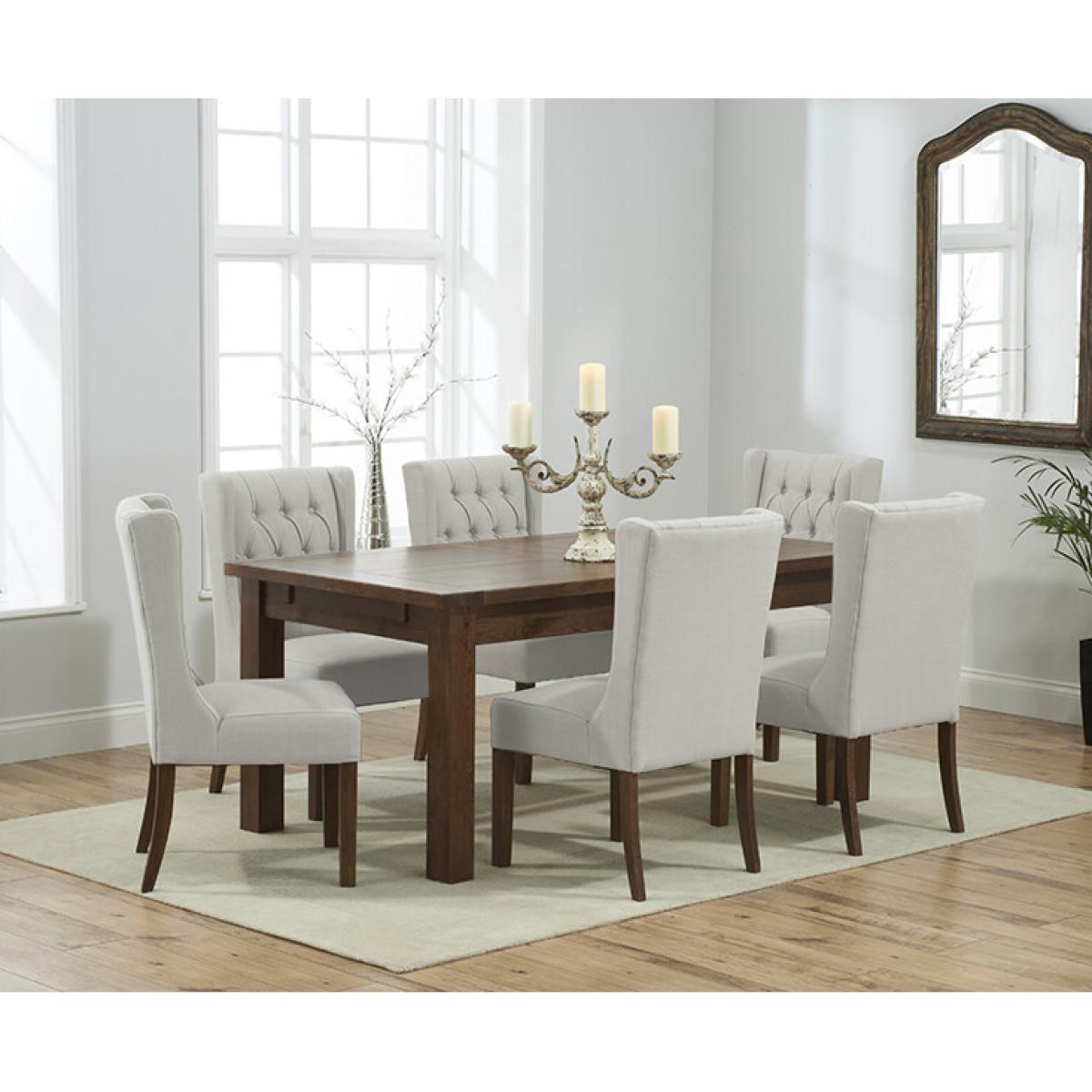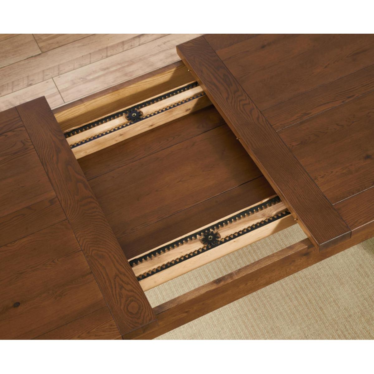 This beautiful extending oak table includes the stunning Darcy dining chairs. It has an inlaid tile effect on the top for a unique look that is sure to impress.